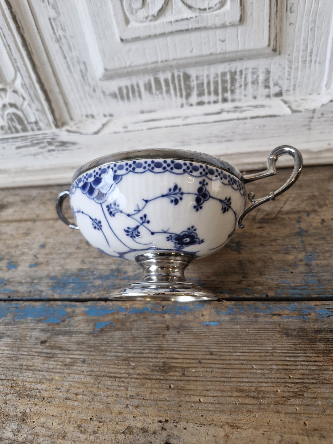 Royal Copenhagen Blue Fluted half lace sugar bowl with silver plated mounting.
