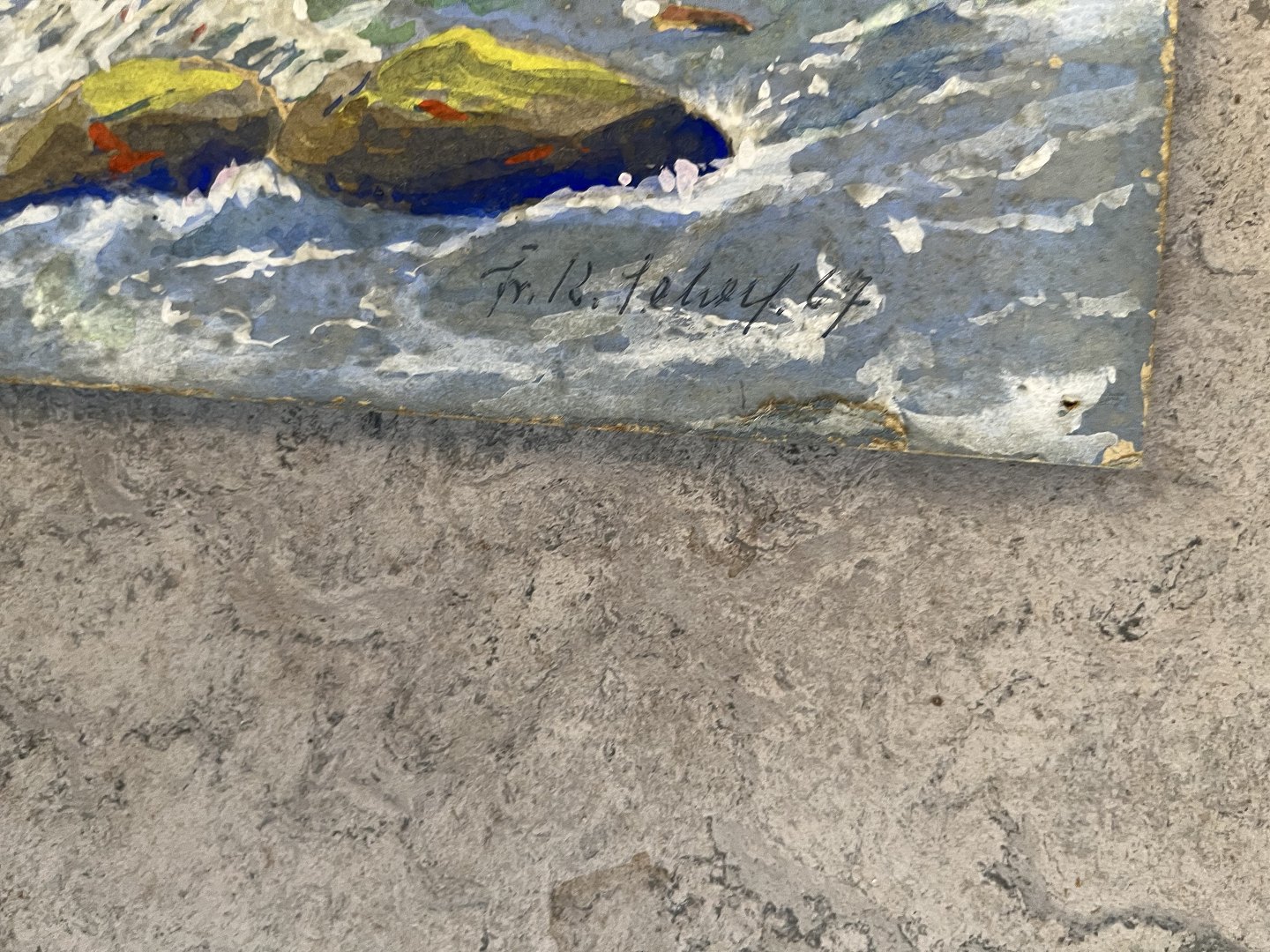 Text available in Danish: Maleri af den Fr. K. Scharf - Landskab fra Hjartdal, Telemark, Norge 1967.