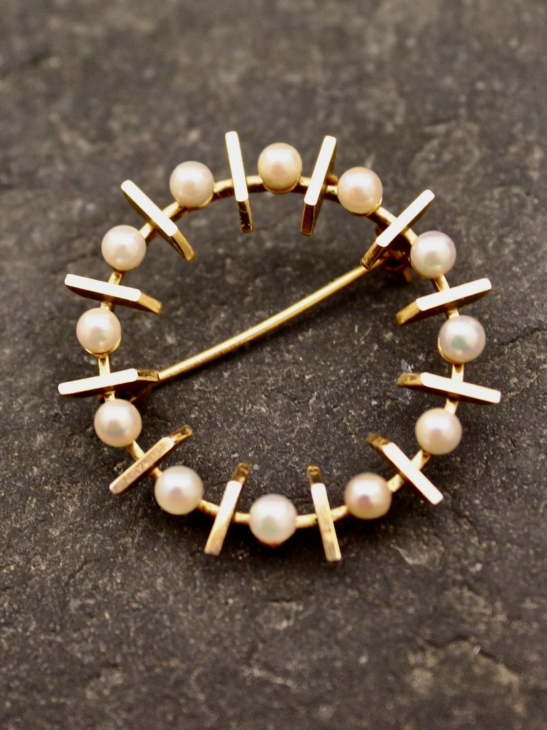 14 carat gold brooch with genuine pearls D. 3.2 cm. from court jeweler B Hertz Copenhagen item no. 631867