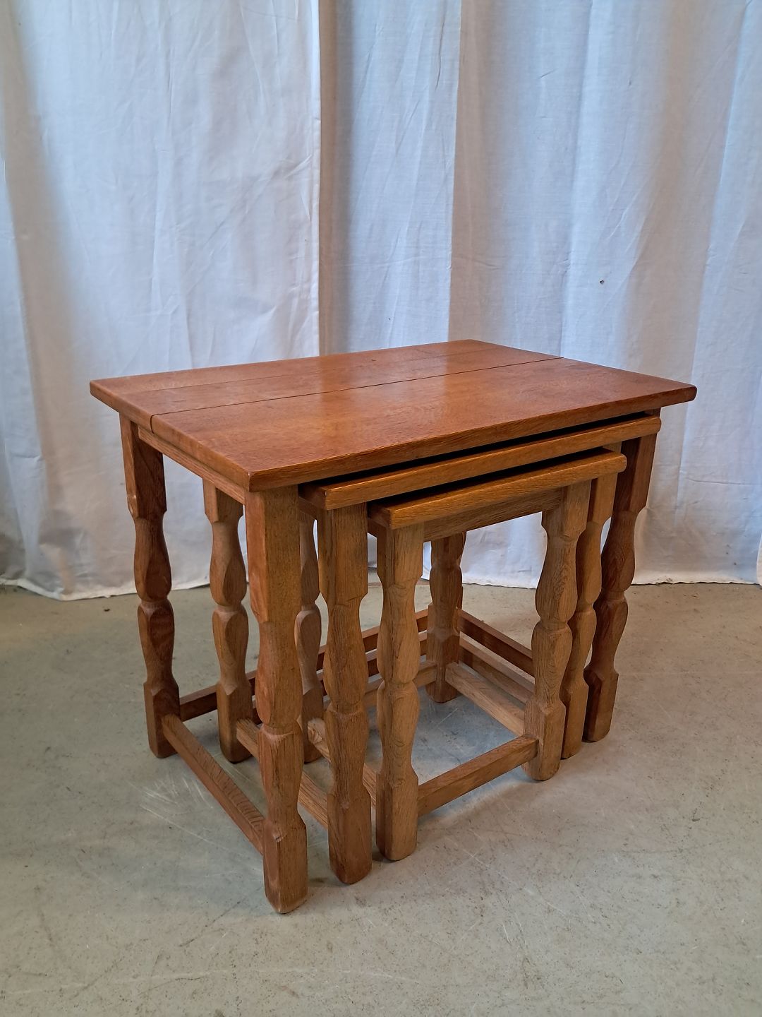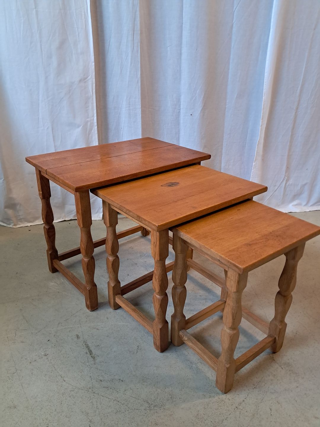 3 Indskudsborde i massivt egetræ, fra 1980erne.