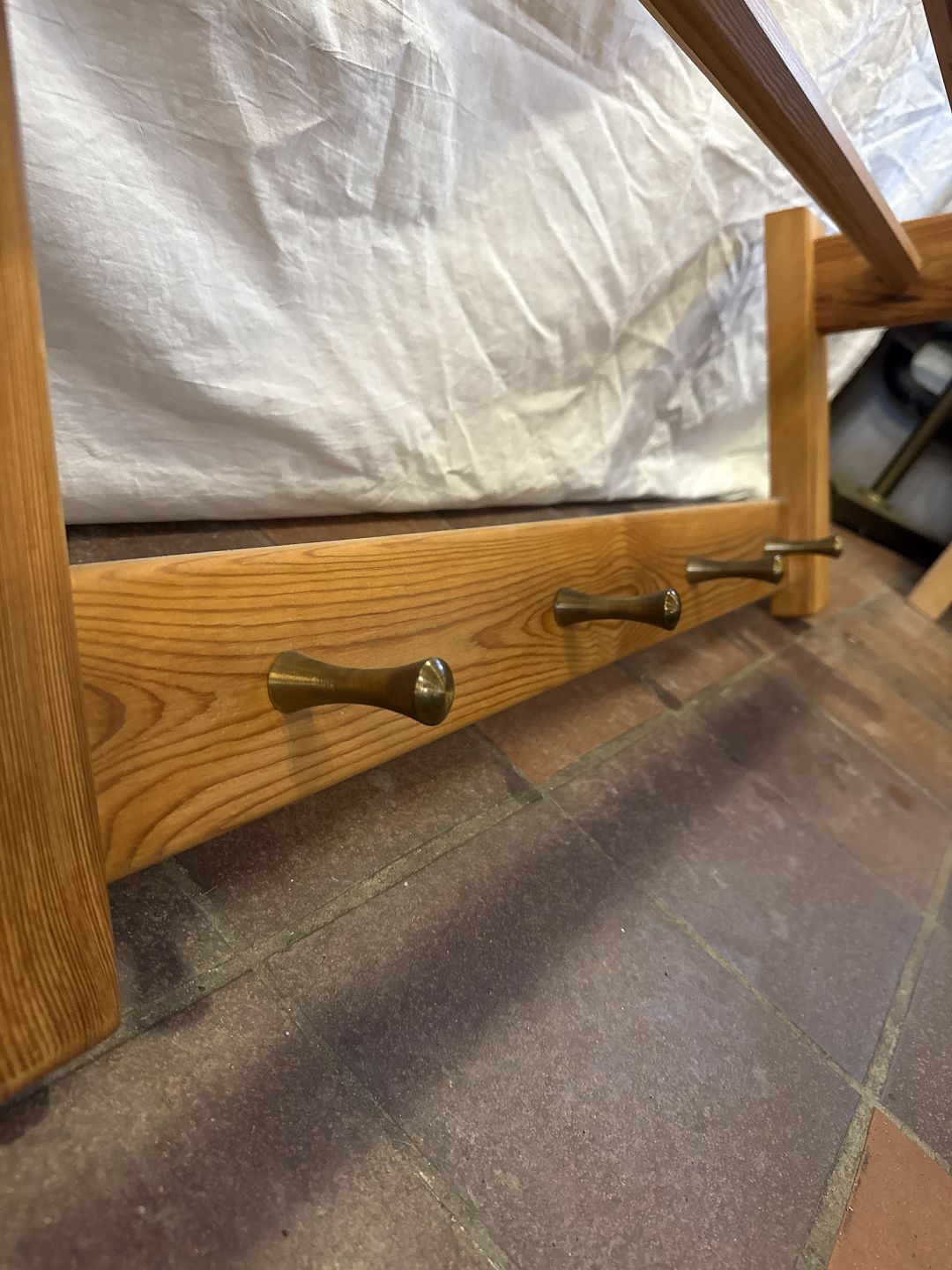 Text available in Danish: Knagerække i massiv fyr