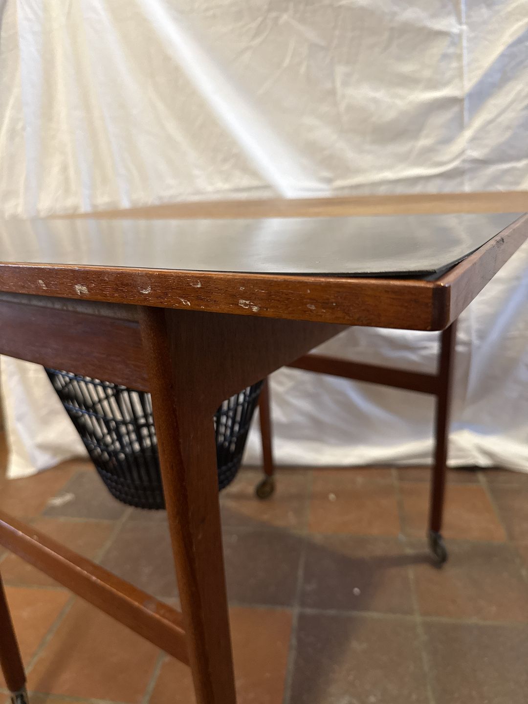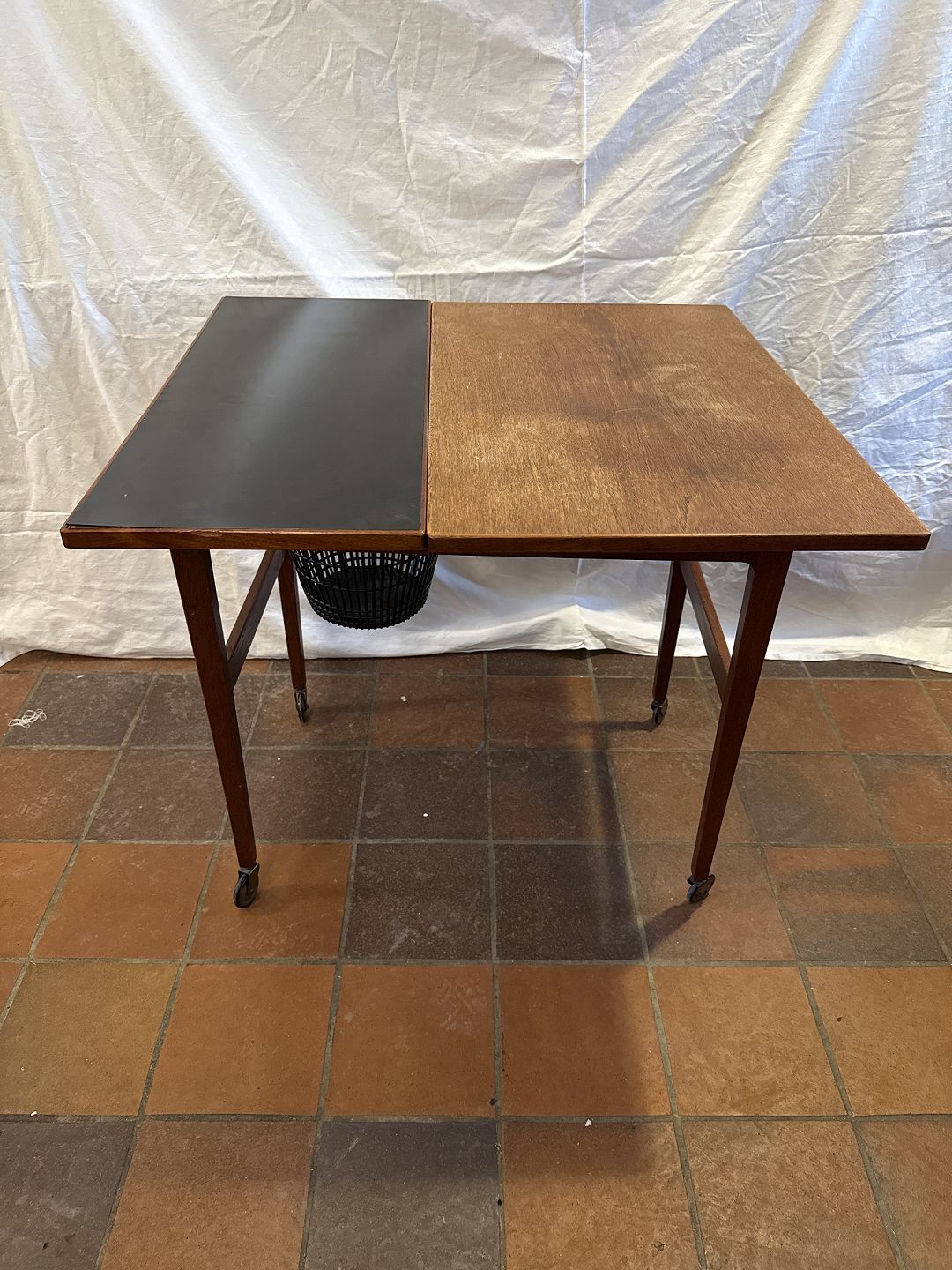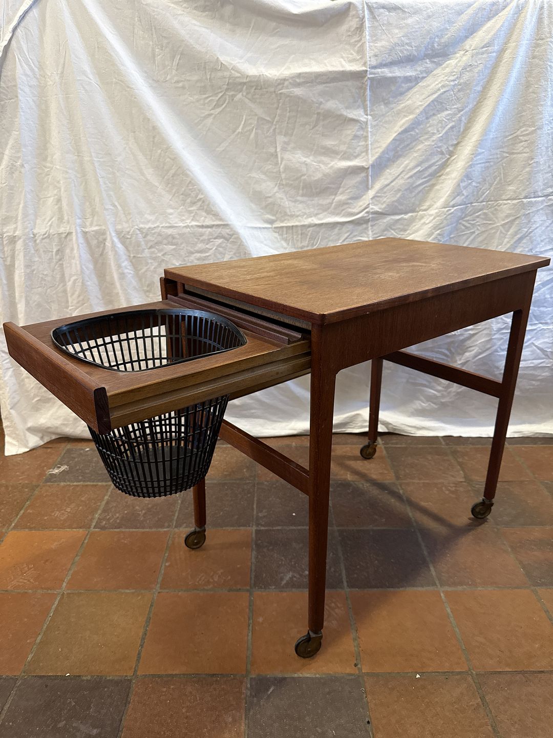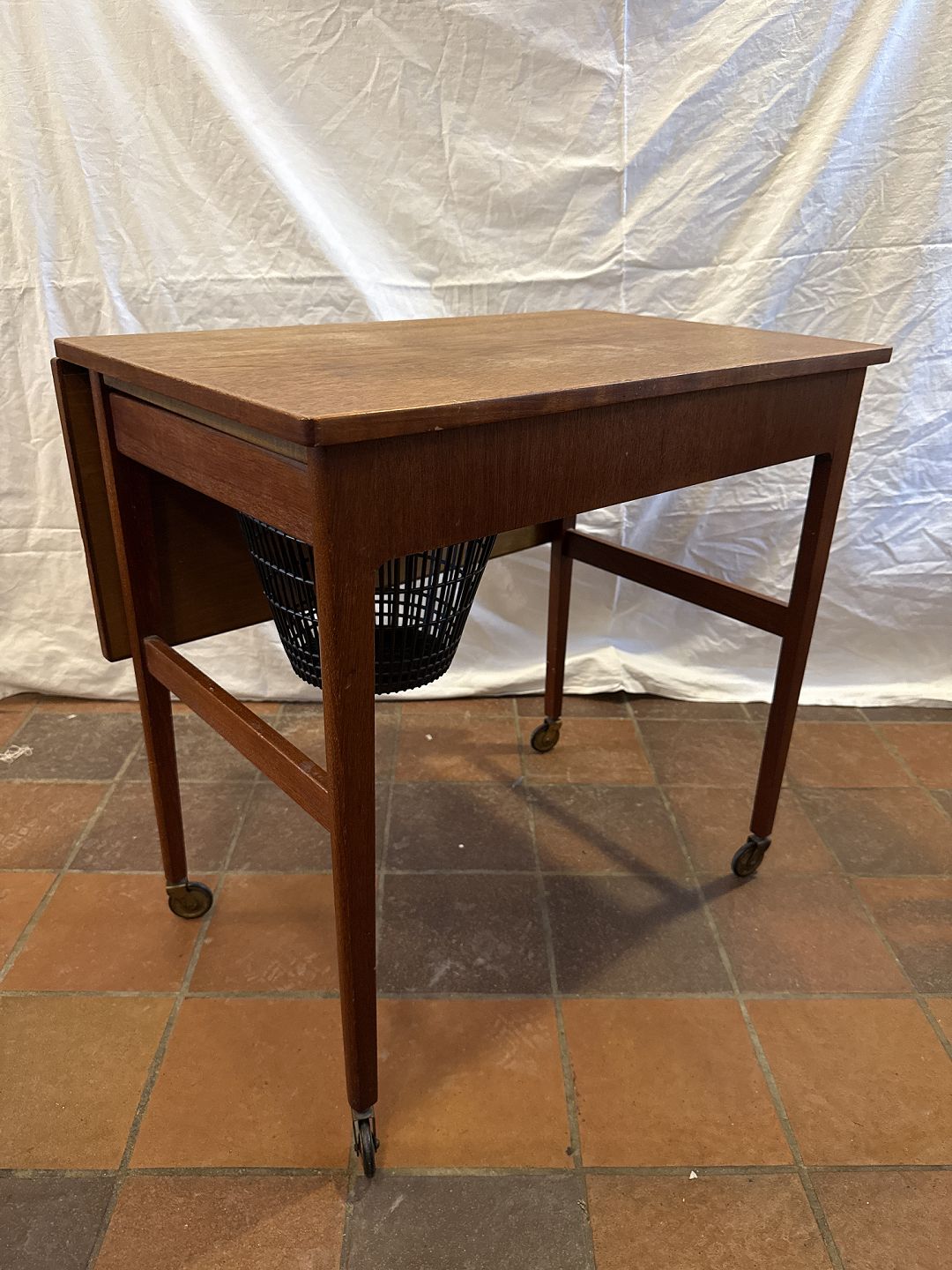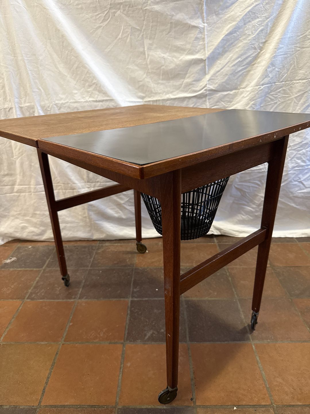 Text available in Danish: Dansk møbelproducent sybord i fineret teak m. plade i formica.