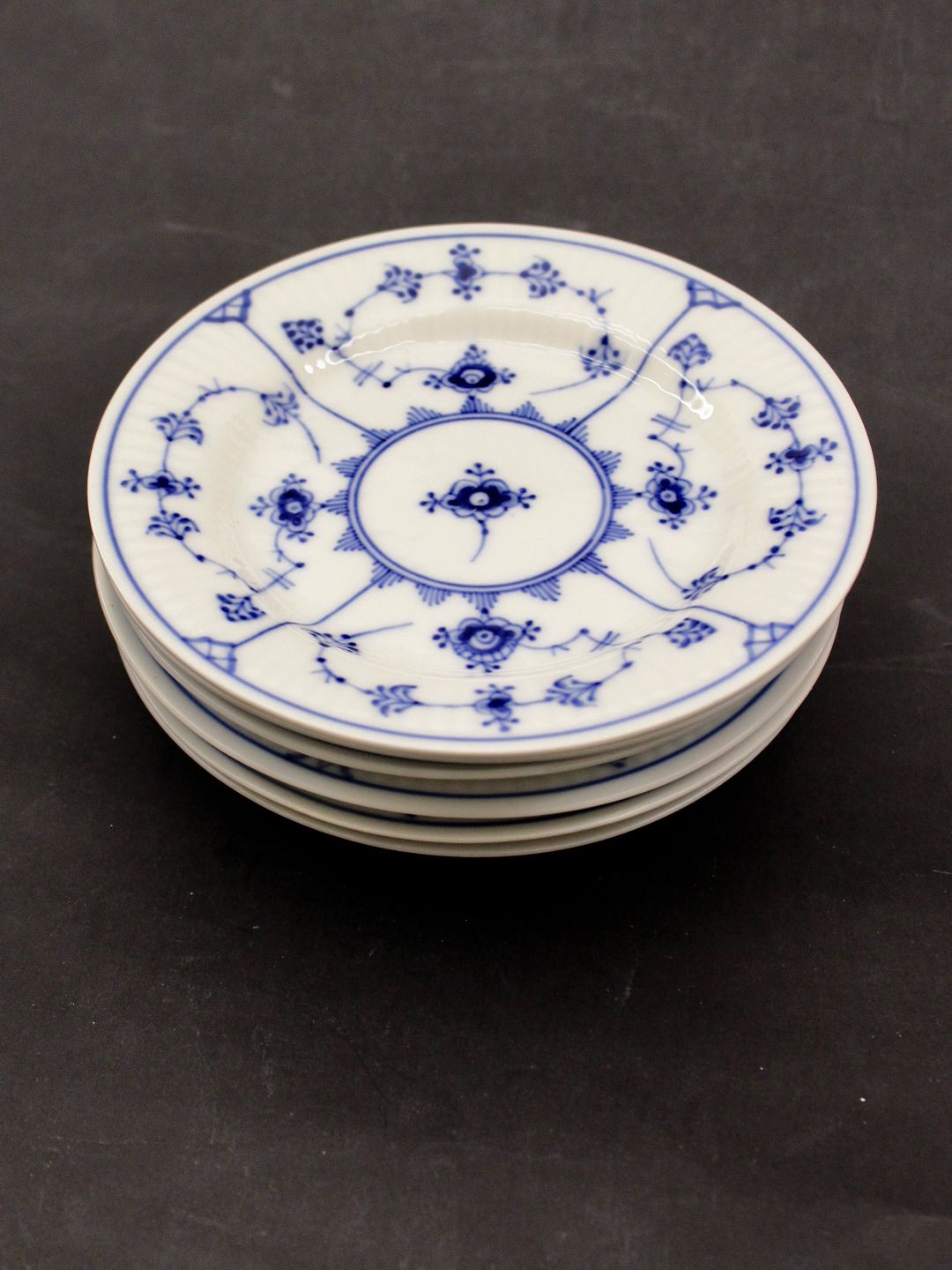 Royal Copenhagen set of 6 blue fluted plates 1/182 D. 14.2 cm. 1st sorting item no. 632009