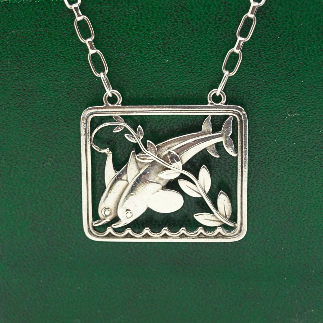 Georg Jensen; A necklace of sterling silver, dolphin, #94