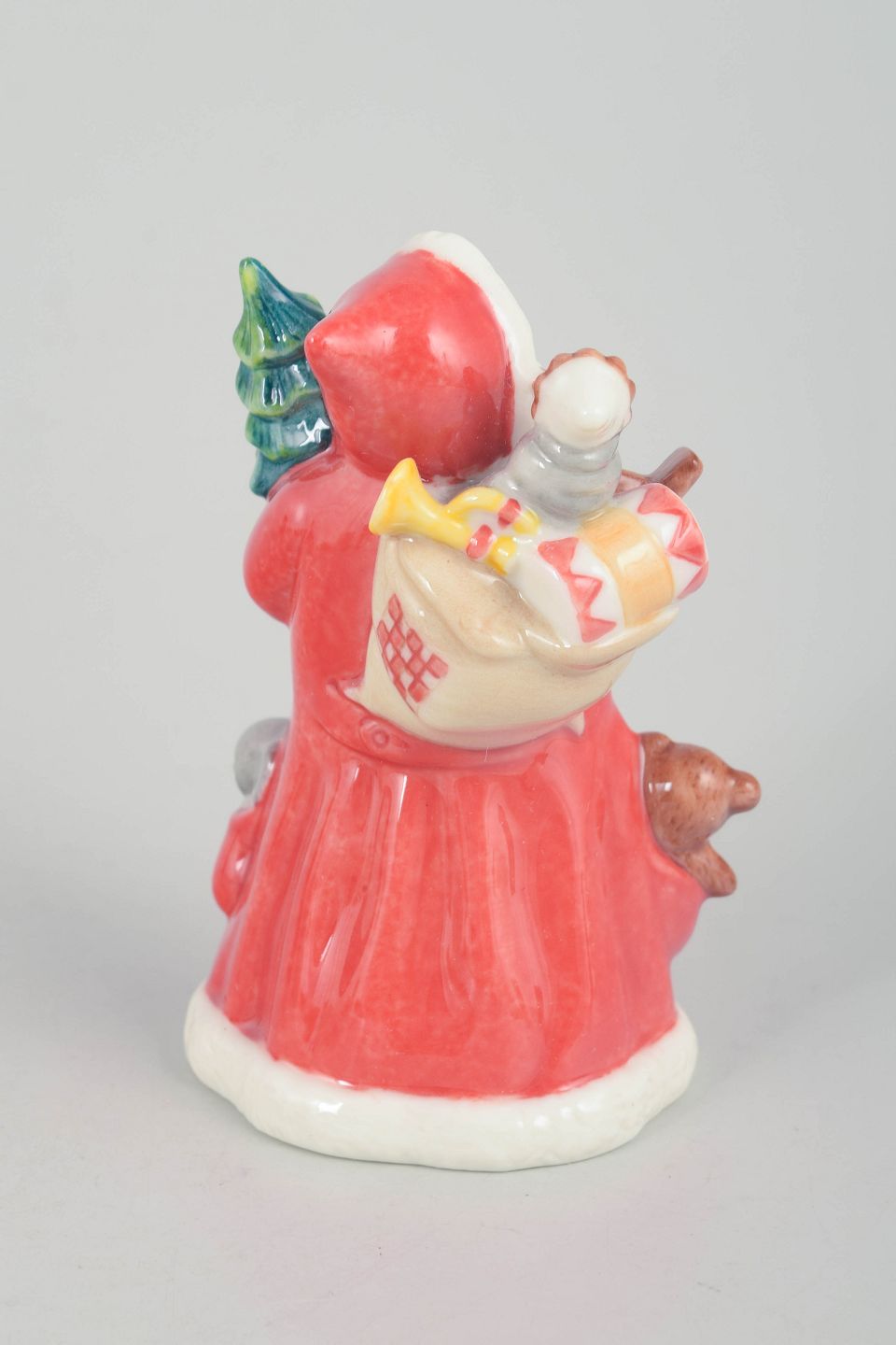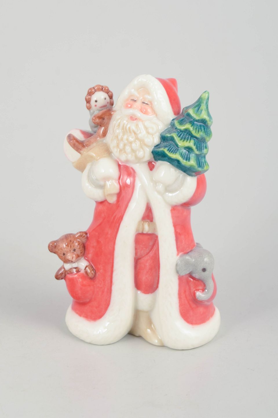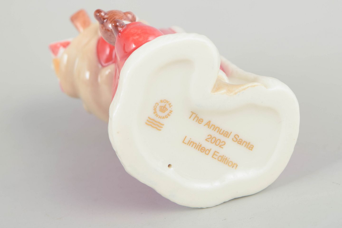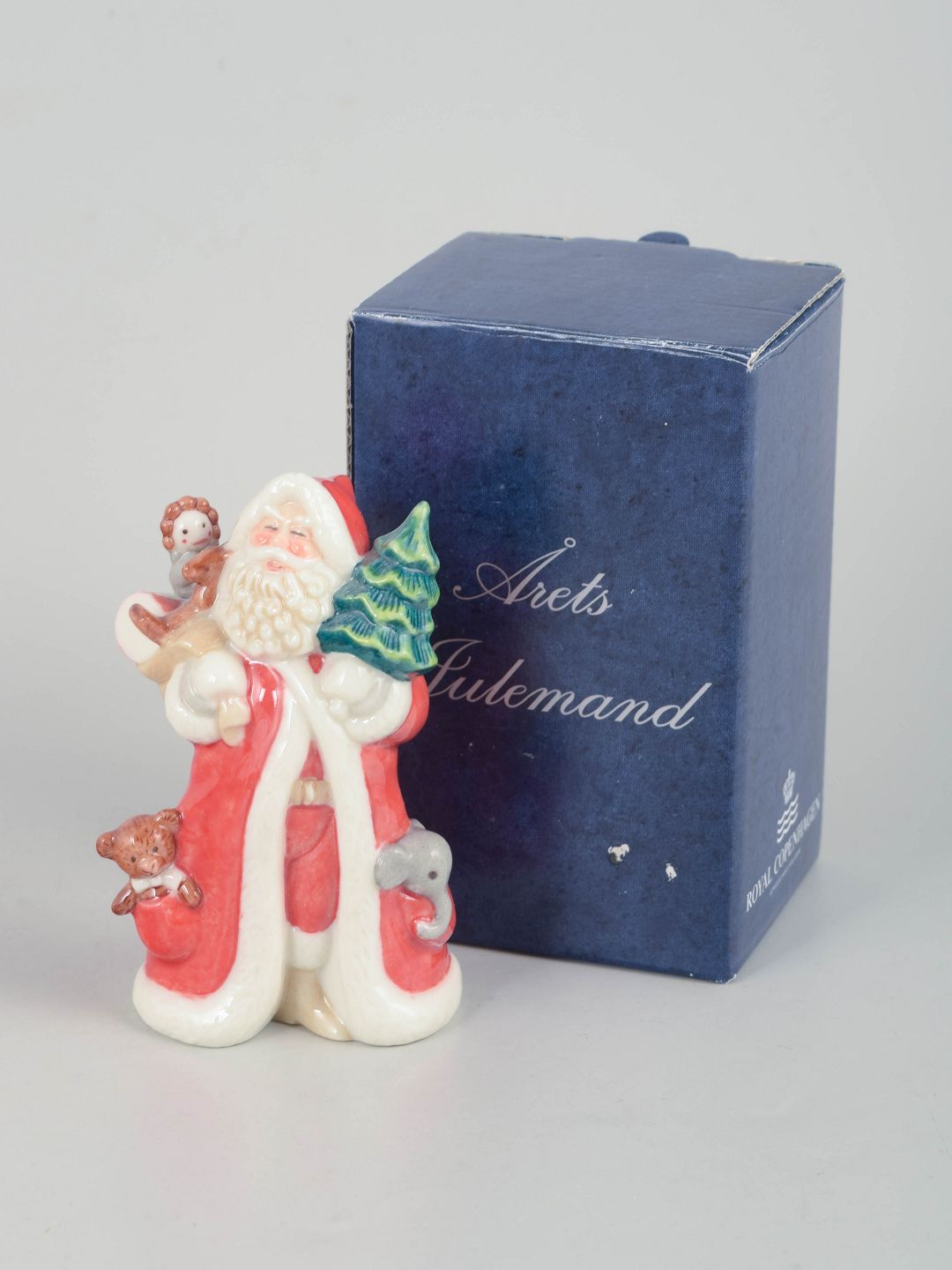 Decorative Santa Claus figurine in hand-painted porcelain from 2002, designed with gift sack over the shoulder. The figure is finely modelled with classic red coat, white fur trim and black belt. First factory quality. Comes with original box.