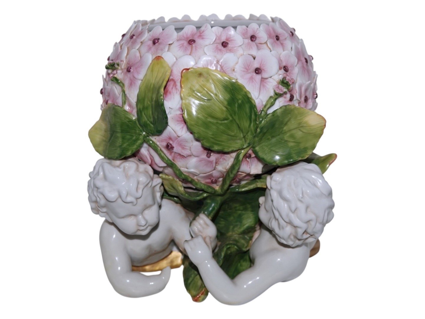 There are some chips on the leafs and on one flowerpot the angel is missing a foot and a leaf has a missing part, please see the pictures, otherwise excellent condition.
