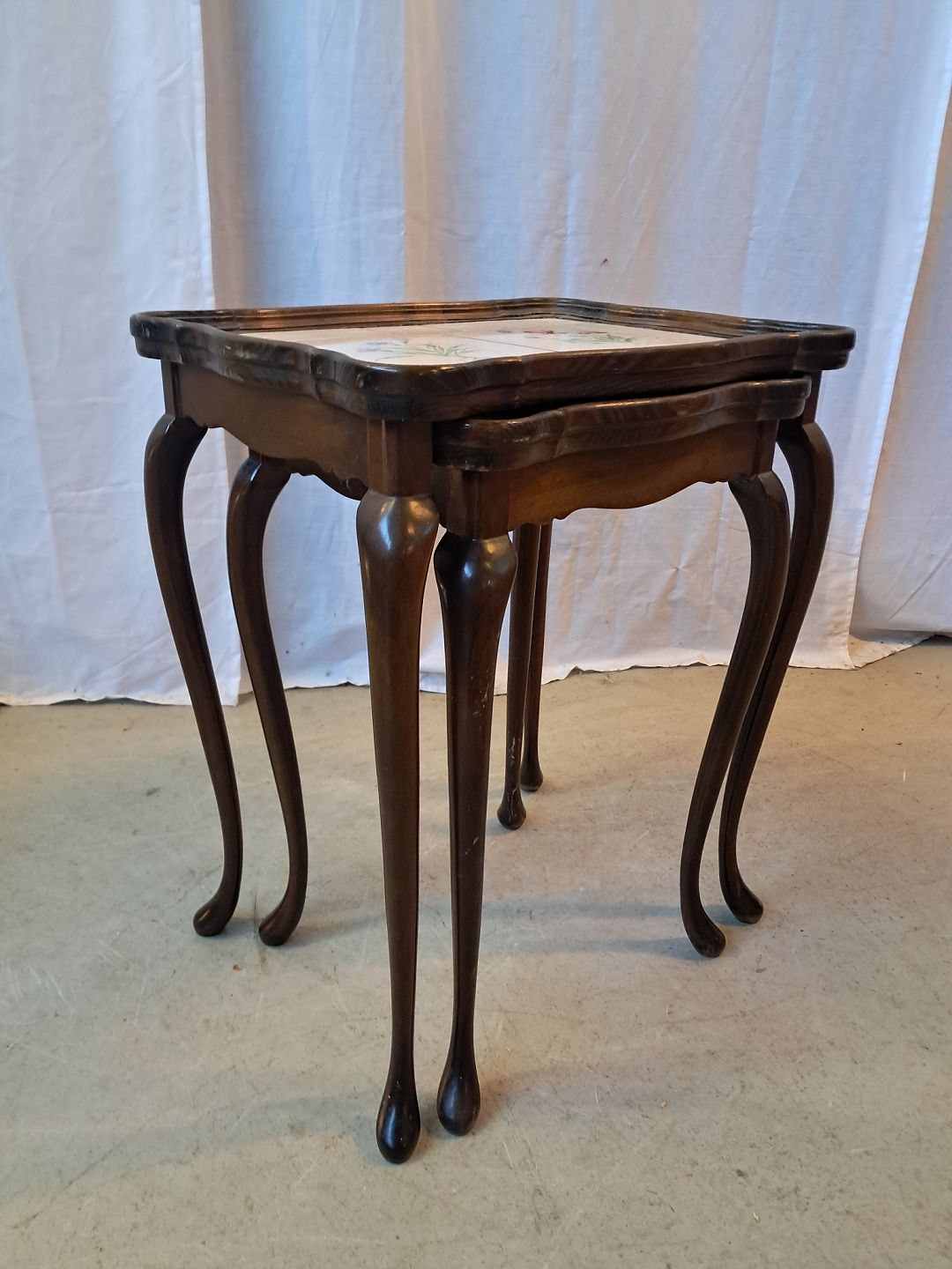 2 Borde i bøgetræ med kakler, fra 1980erne.