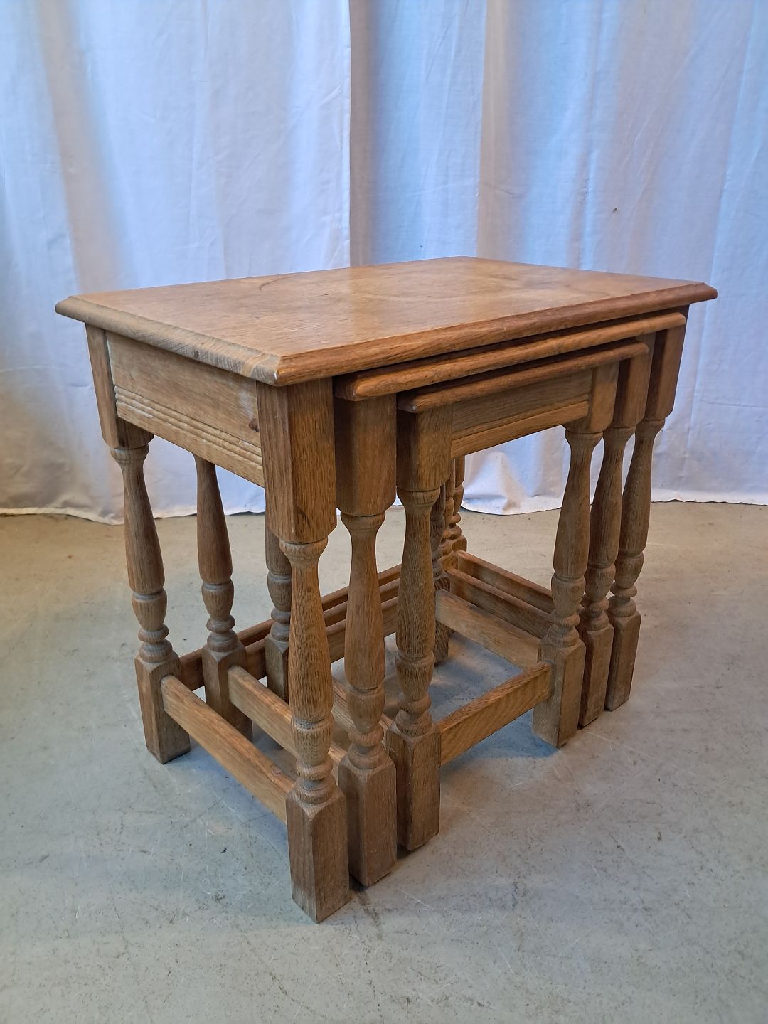 3 Indskudsborde i massivt egetræ, fra 1980erne.