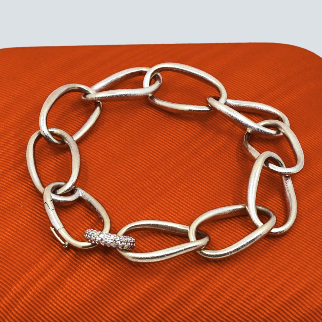 Ole Lynggaard; Love bracelet - heavy, in 14k white gold set with diamonds. Clasp with safety lock. Designed by Charlotte Lynggaard.