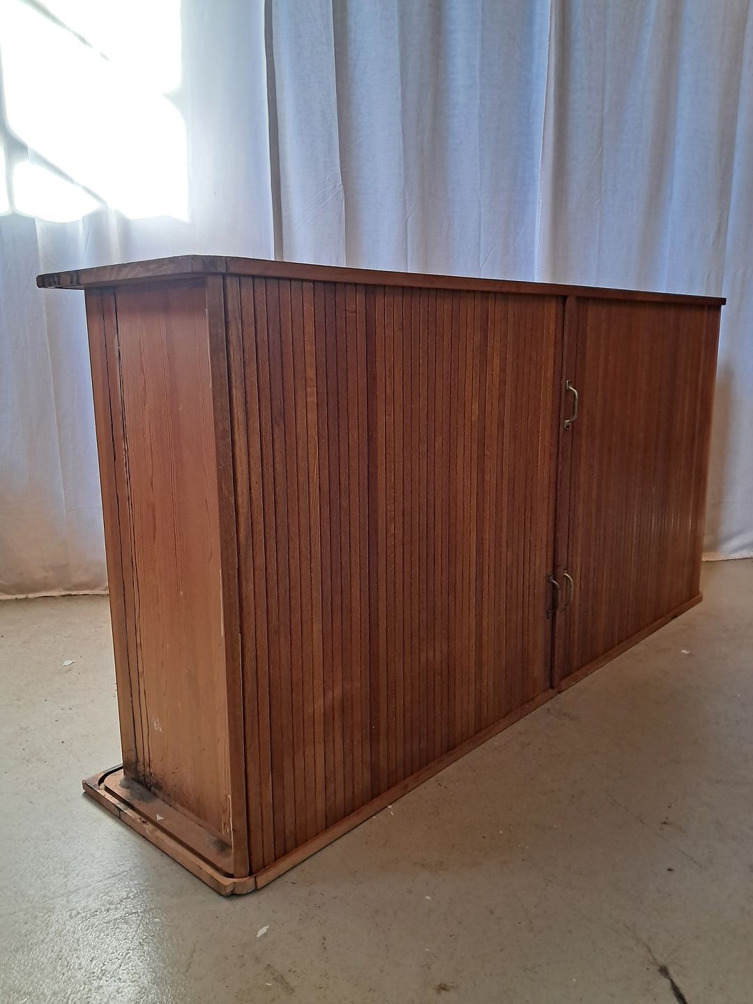 Jalousiskab i fineret egetræ, fra 1950erne.