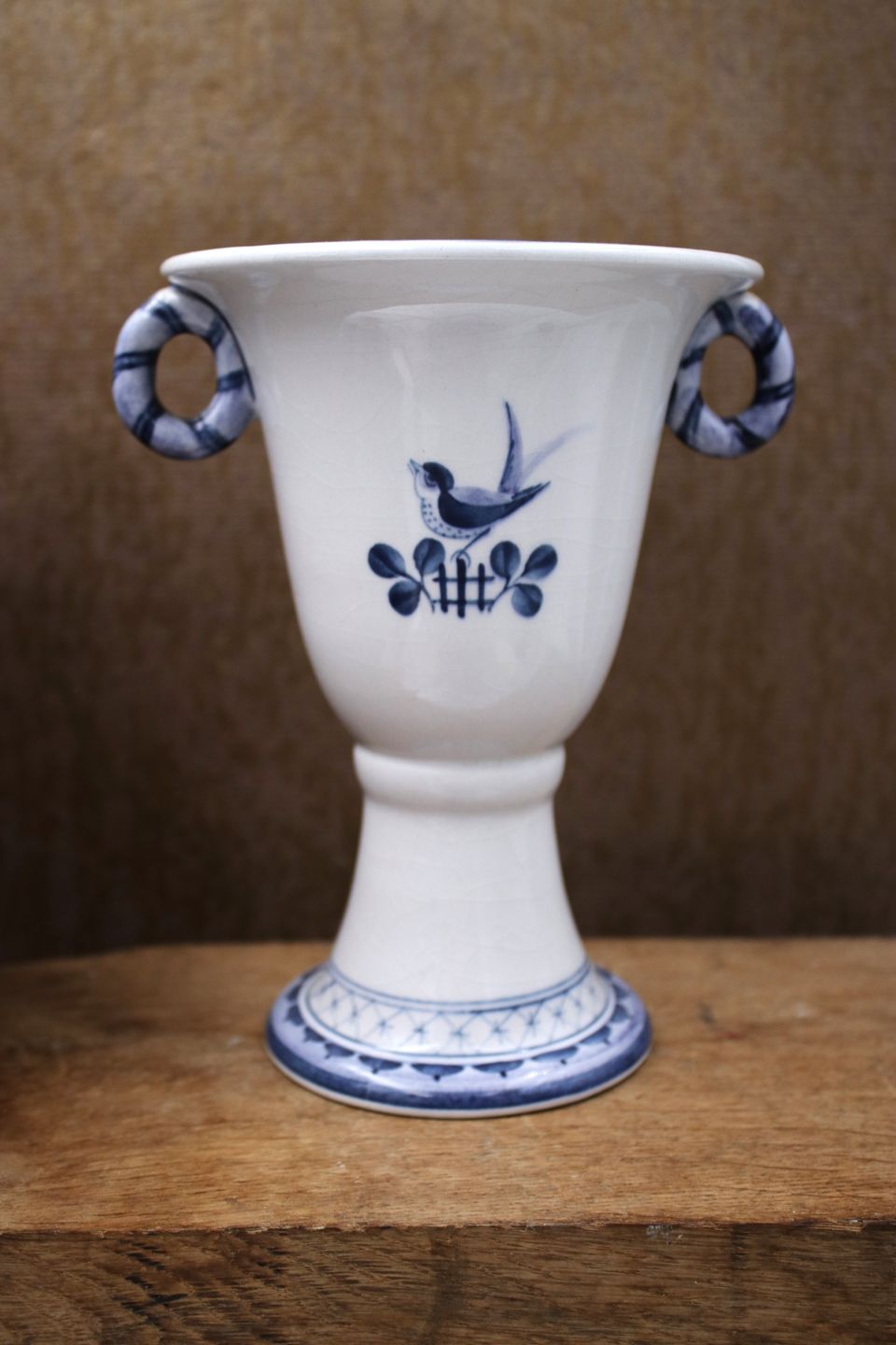 Trankebar faience vase on foot from Aluminia - Royal Copenhagen.