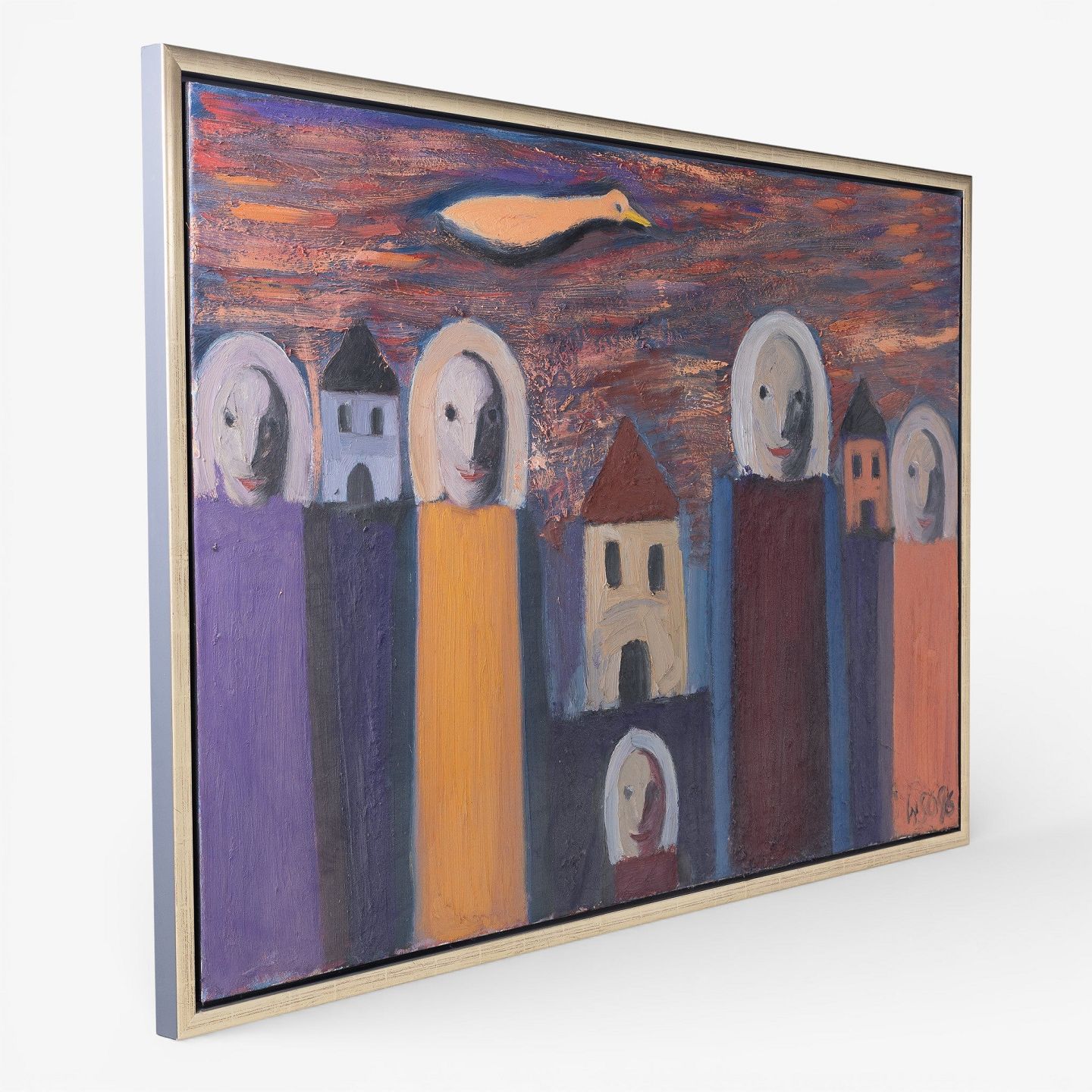 Oil on canvas in silver frame. Signed. 1996.