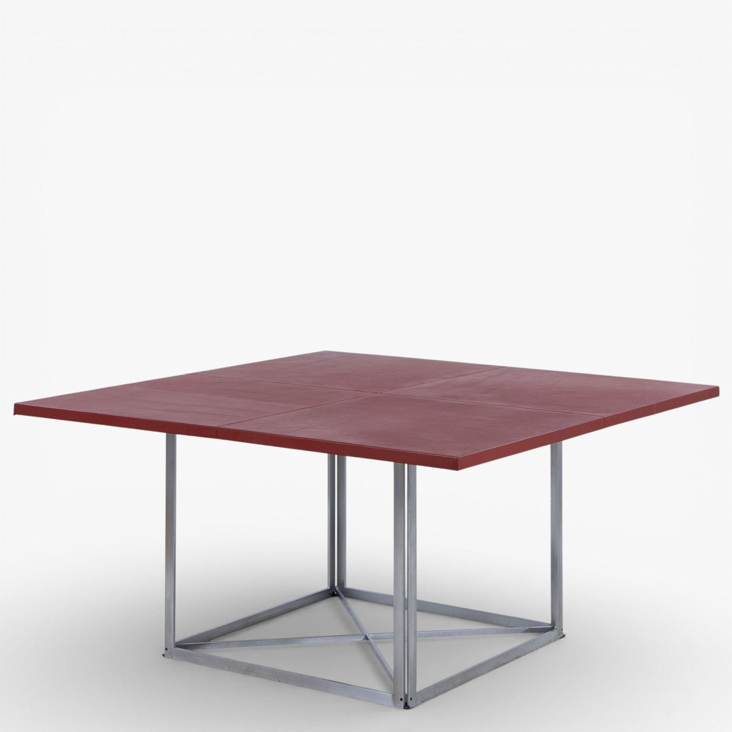 PK 40 - Square dining table with red leather top on steel frame. Manufacturer's mark.