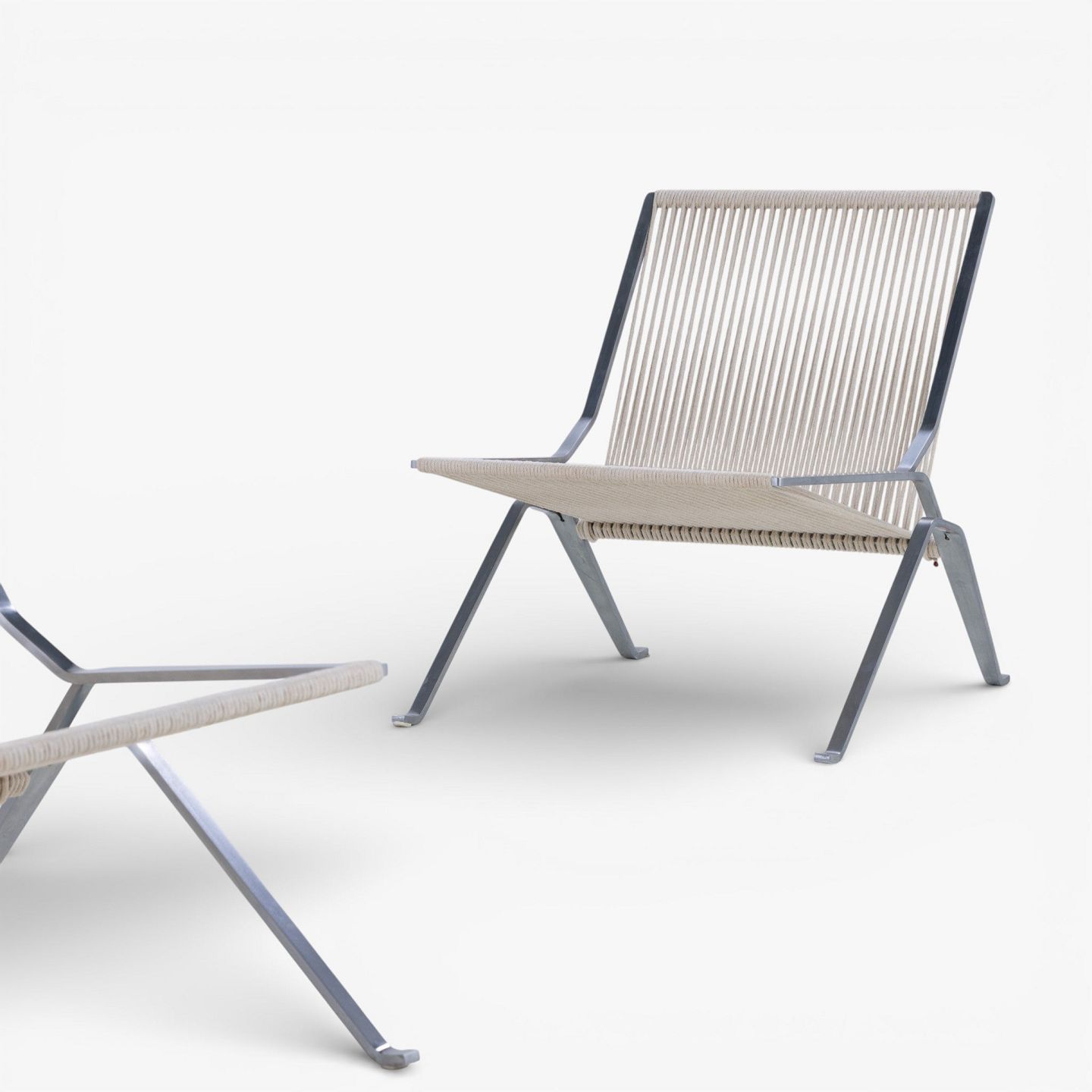 PK 25 - Pair of 'Element' armchairs in steel and flagline. Designed in 1952. Manufacturer's stamp.