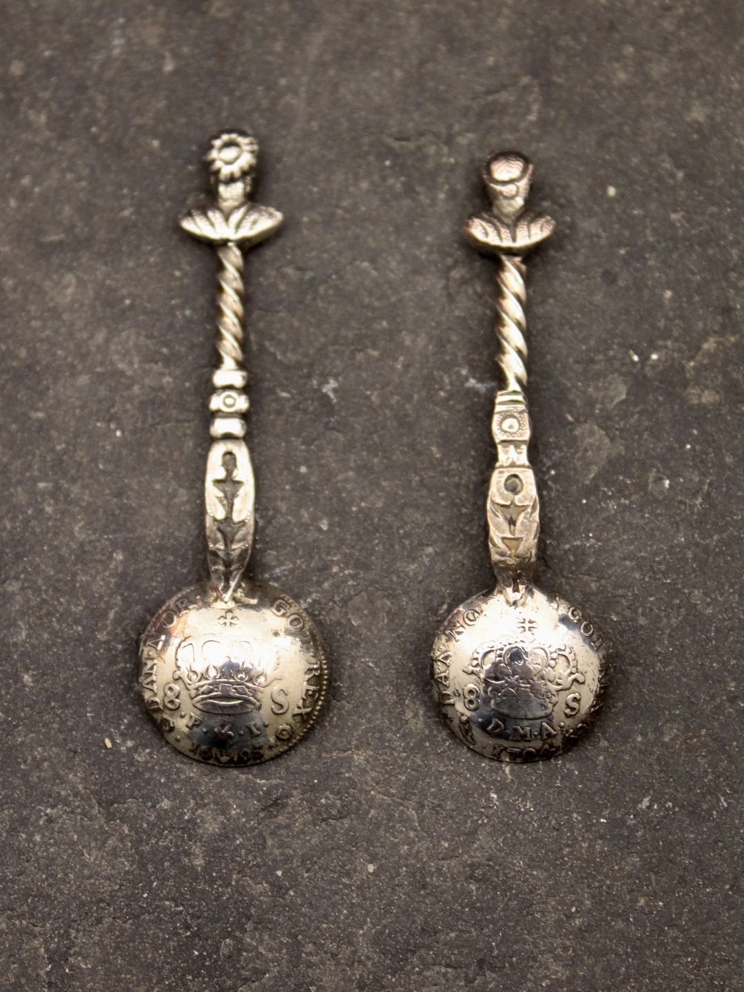 A pair of silver salt spoons L. 6.5 cm. of old Danish silver coins item no. 632411