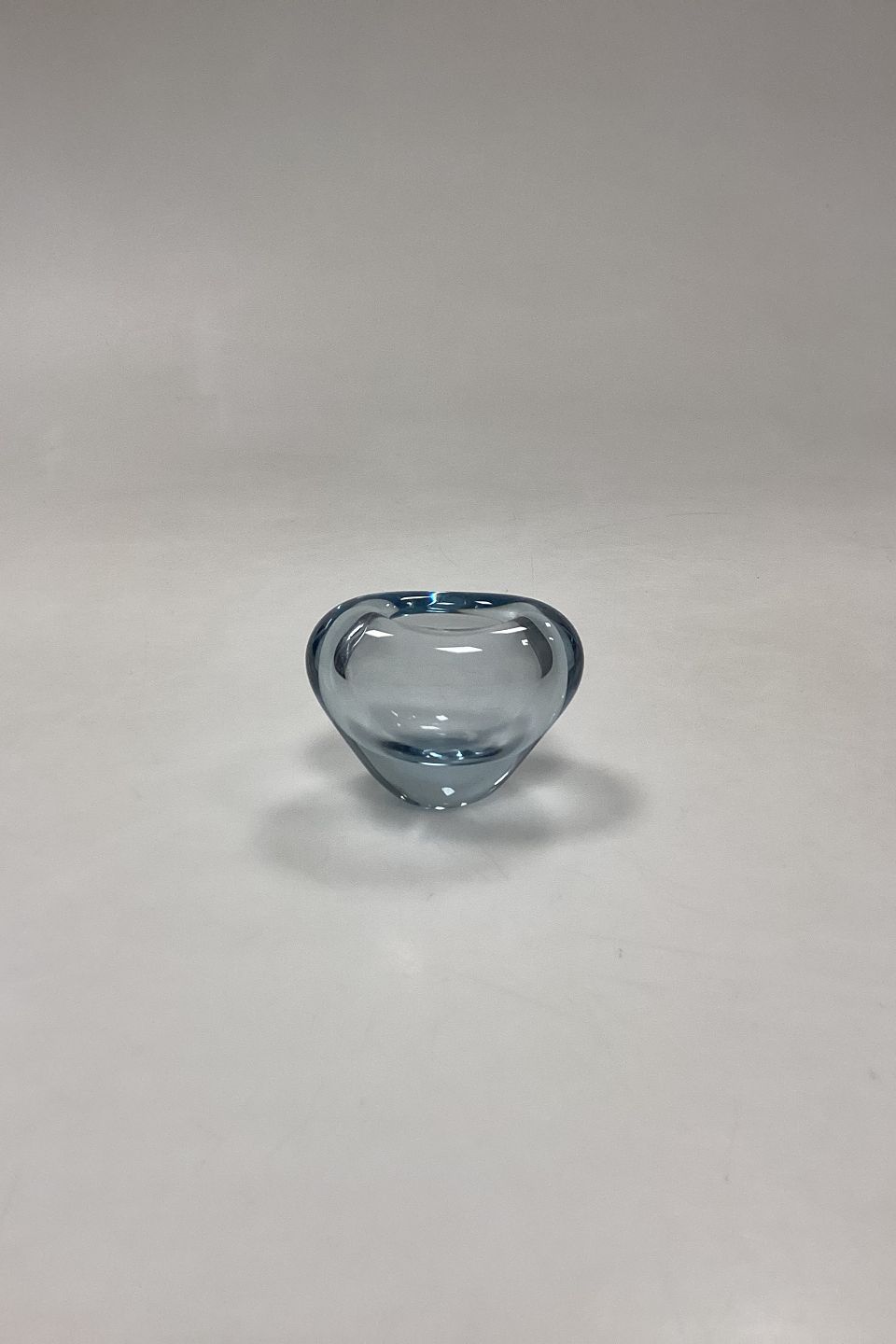 Holmegaard Menuet Glass Vase. Color: Aqua. Shape: Heart. Designed by Per Lütken. In production between 1955-85. Signed PL 1962.