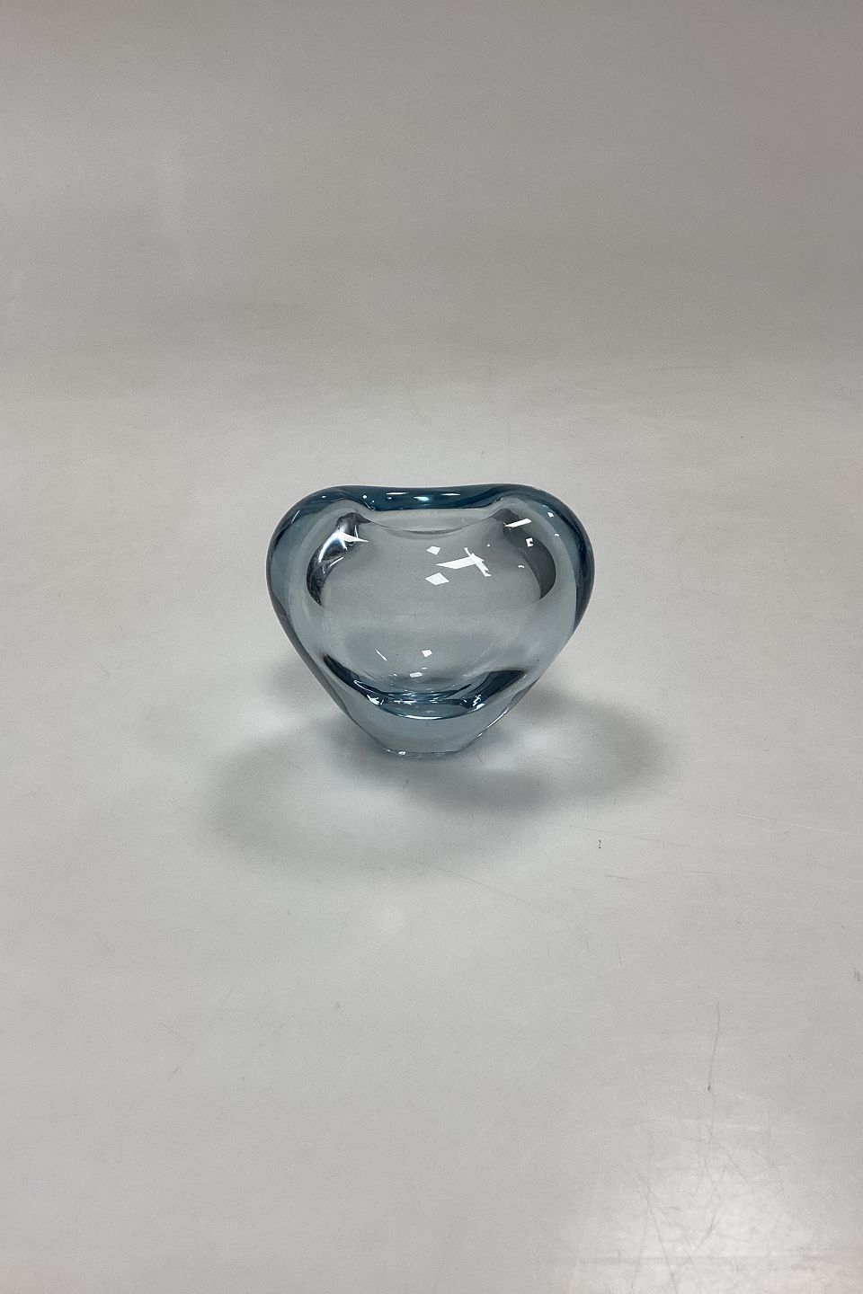 Holmegaard Menuet Glass Vase. Color: Aqua. Shape: Heart. Designed by Per Lütken. In production between 1955-85. Signed PL 1961.