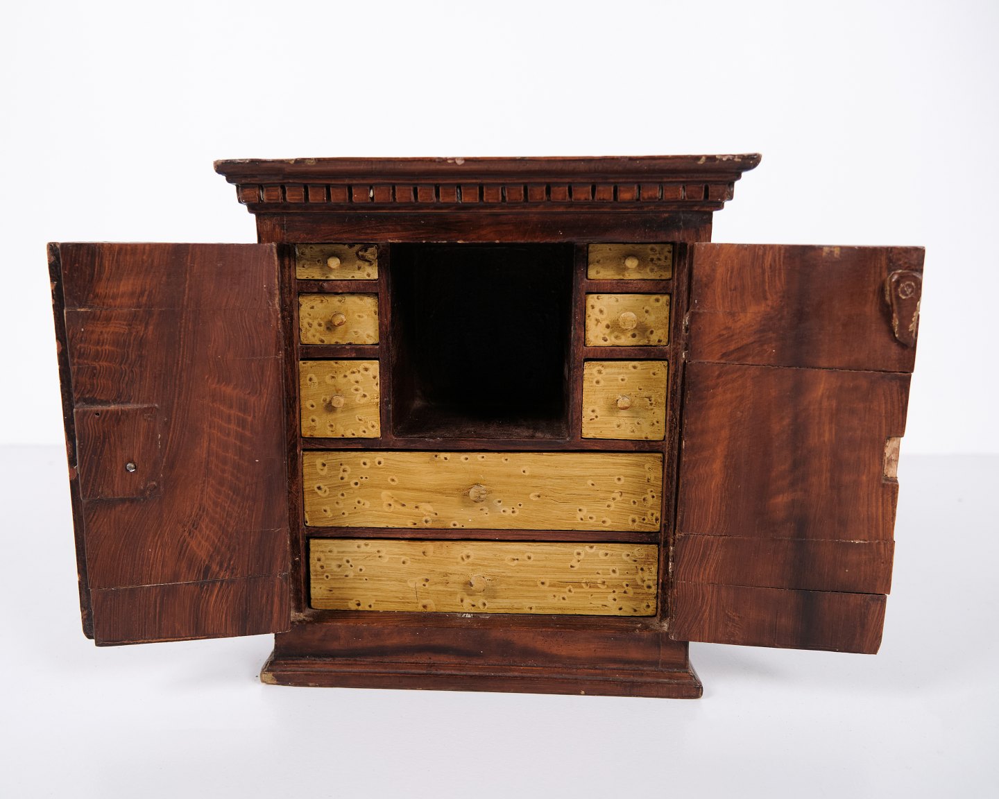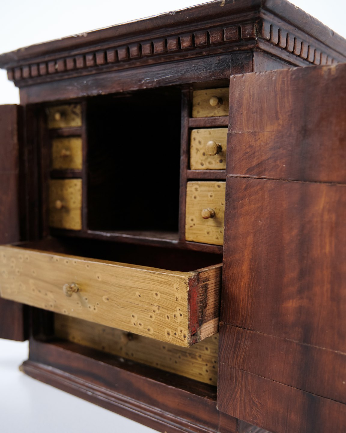 Antique miniature furniture in oak with hand-forged fittings from the 1840s. Unique and decorative collector’s item with historical character.