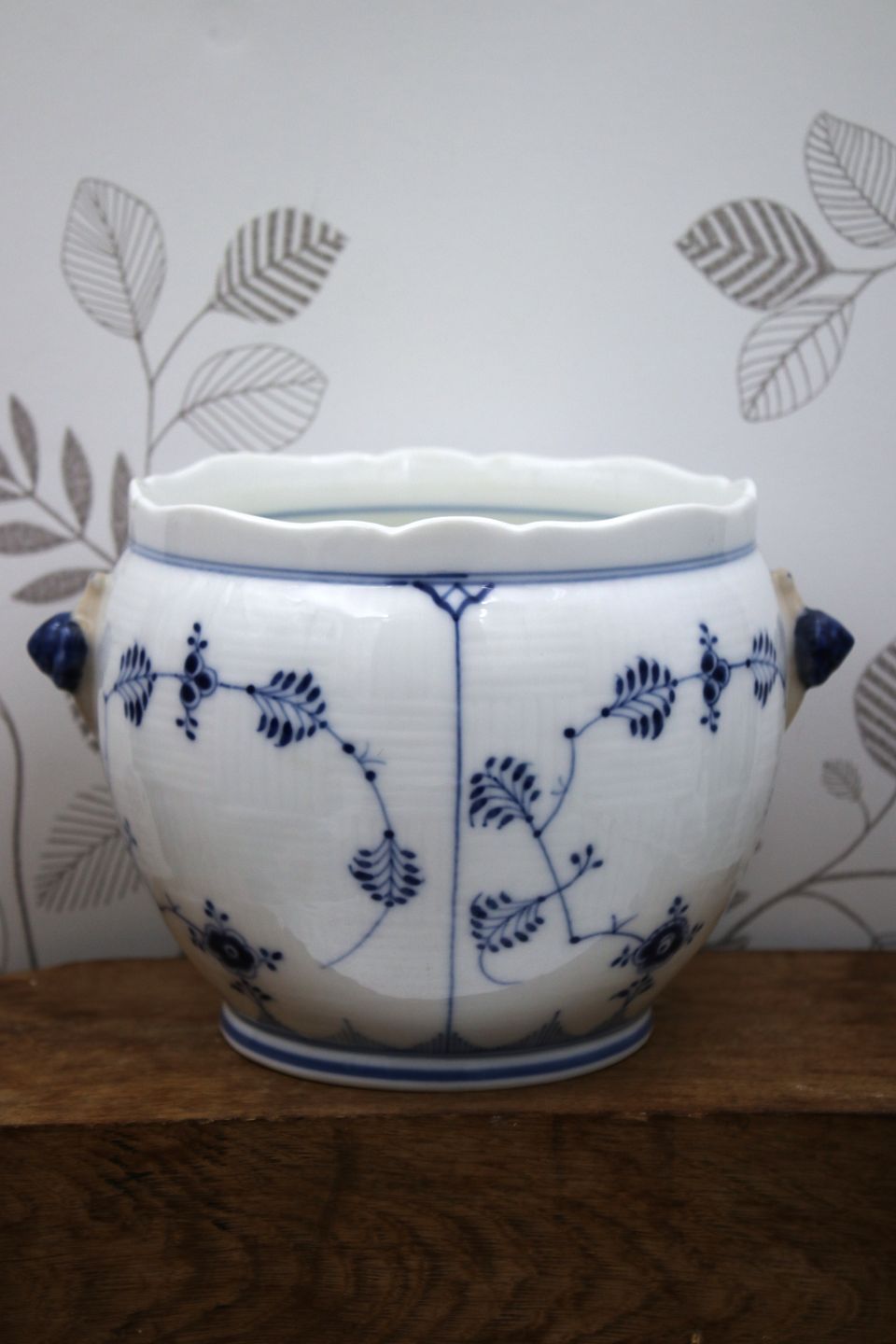 Rare Blue Fluted Plain Flower Pot Cover from Royal Copenhagen.