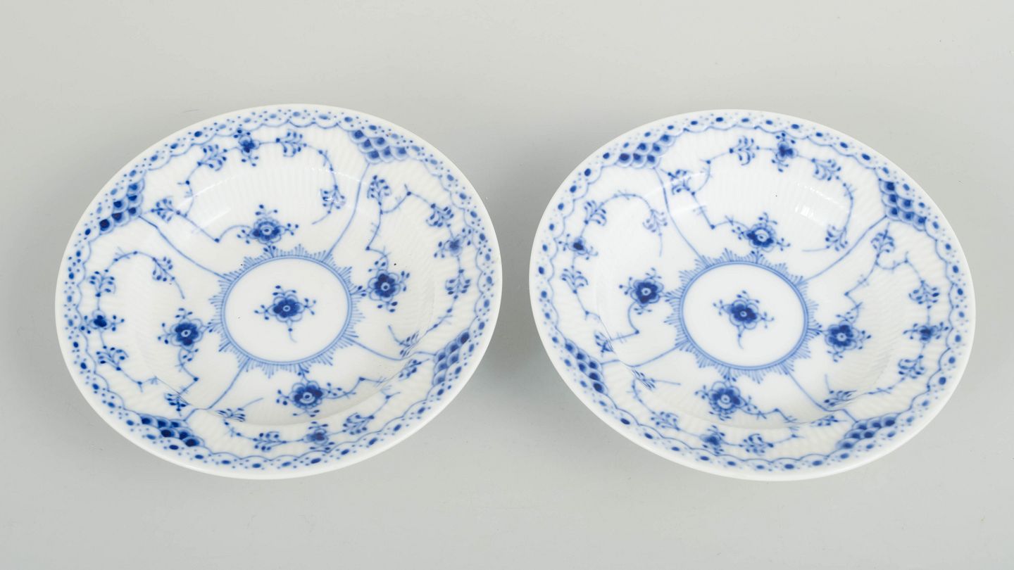 Royal Copenhagen Blue Fluted Half Lace, set of two small deep plates.