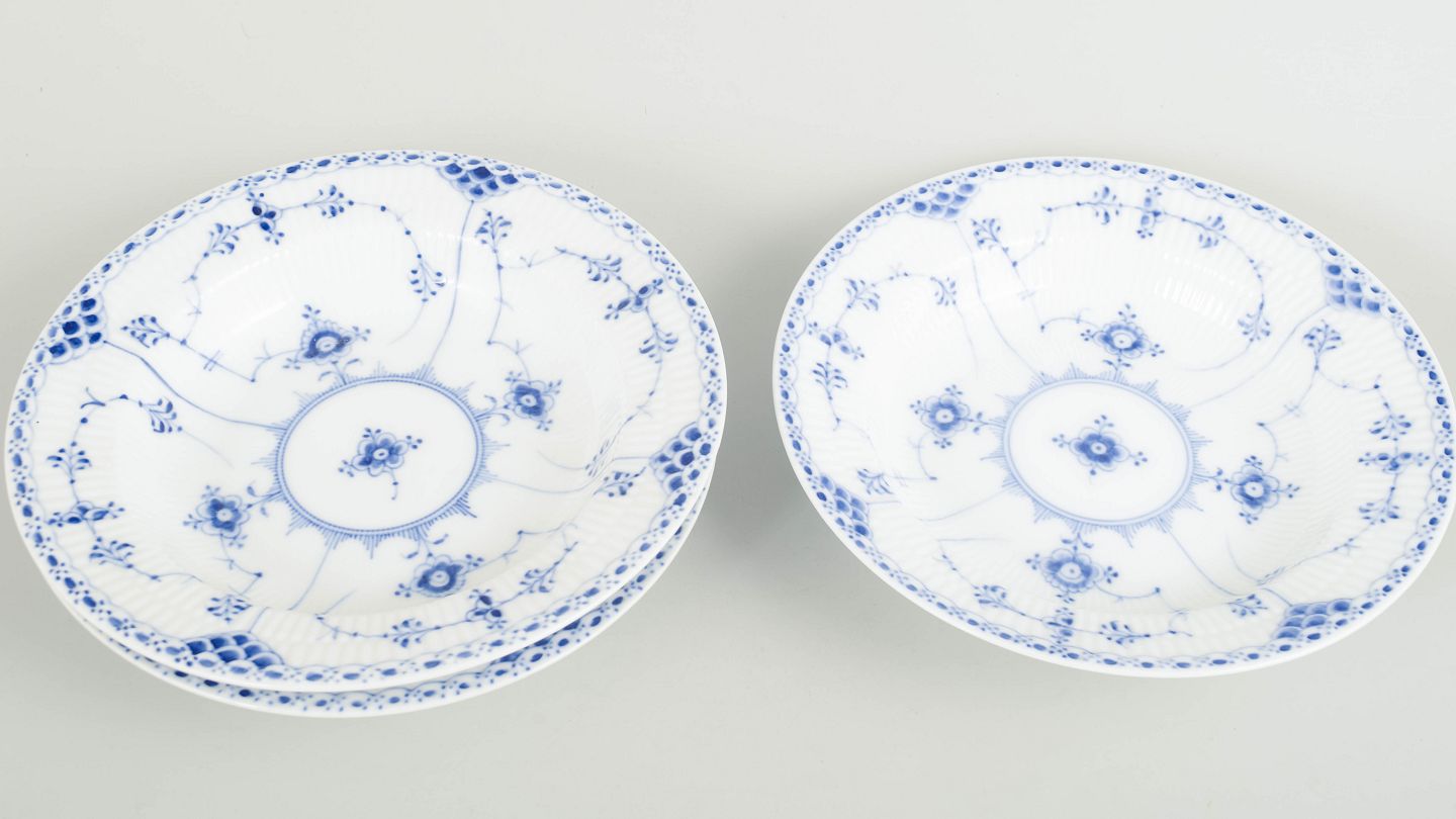 Royal Copenhagen Blue Fluted Half Lace, set of three deep plates.