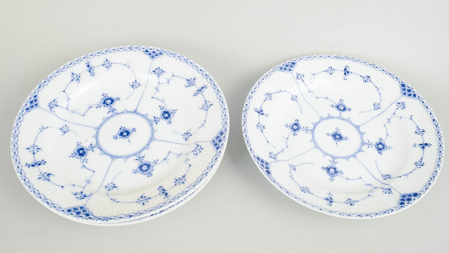 Royal Copenhagen Blue Fluted Half Lace, set of four dinner plates.