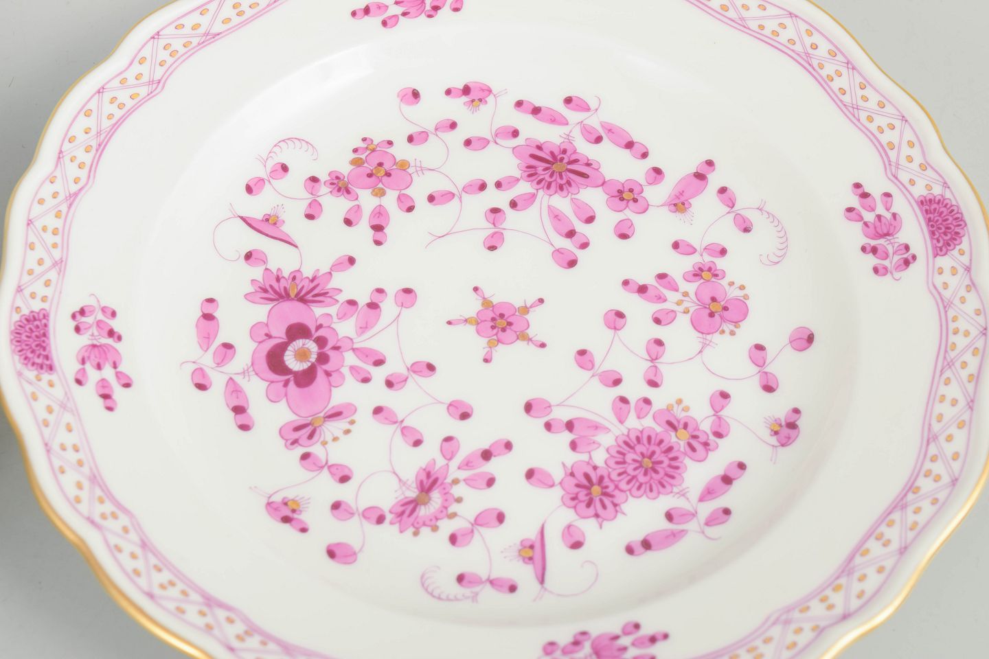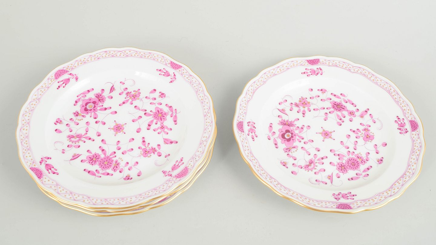 Meissen, set of four "Pink Indian flower" salad plates.