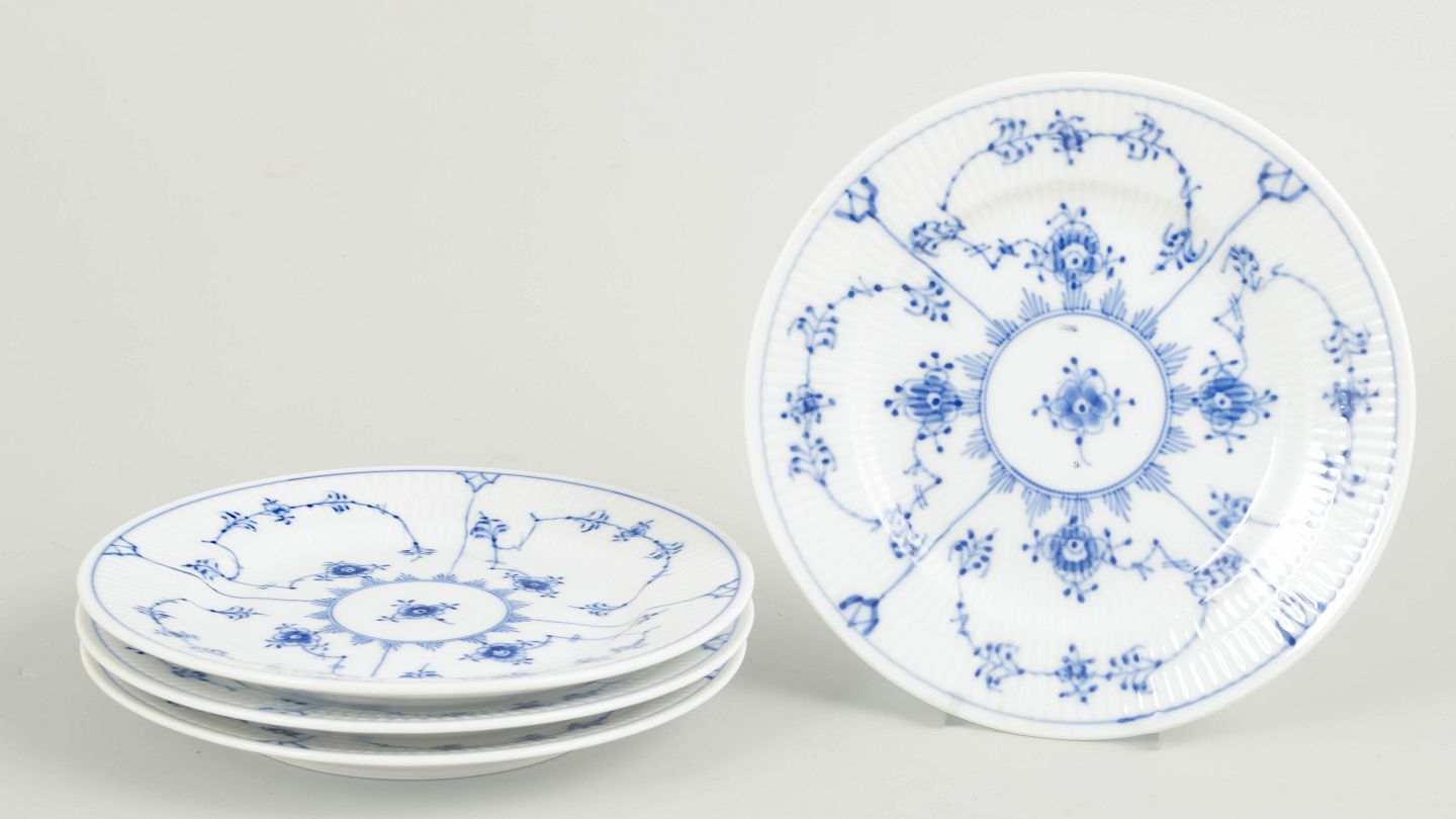 Royal Copenhagen Blue Fluted Plain, set of four cake plates.