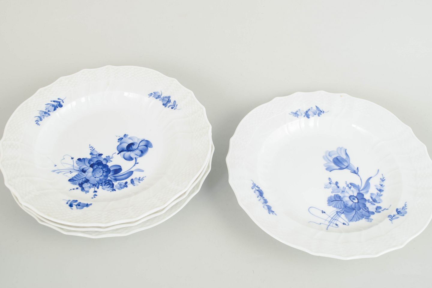 Royal Copenhagen Blue Flower Curved, set of four dinner plates.