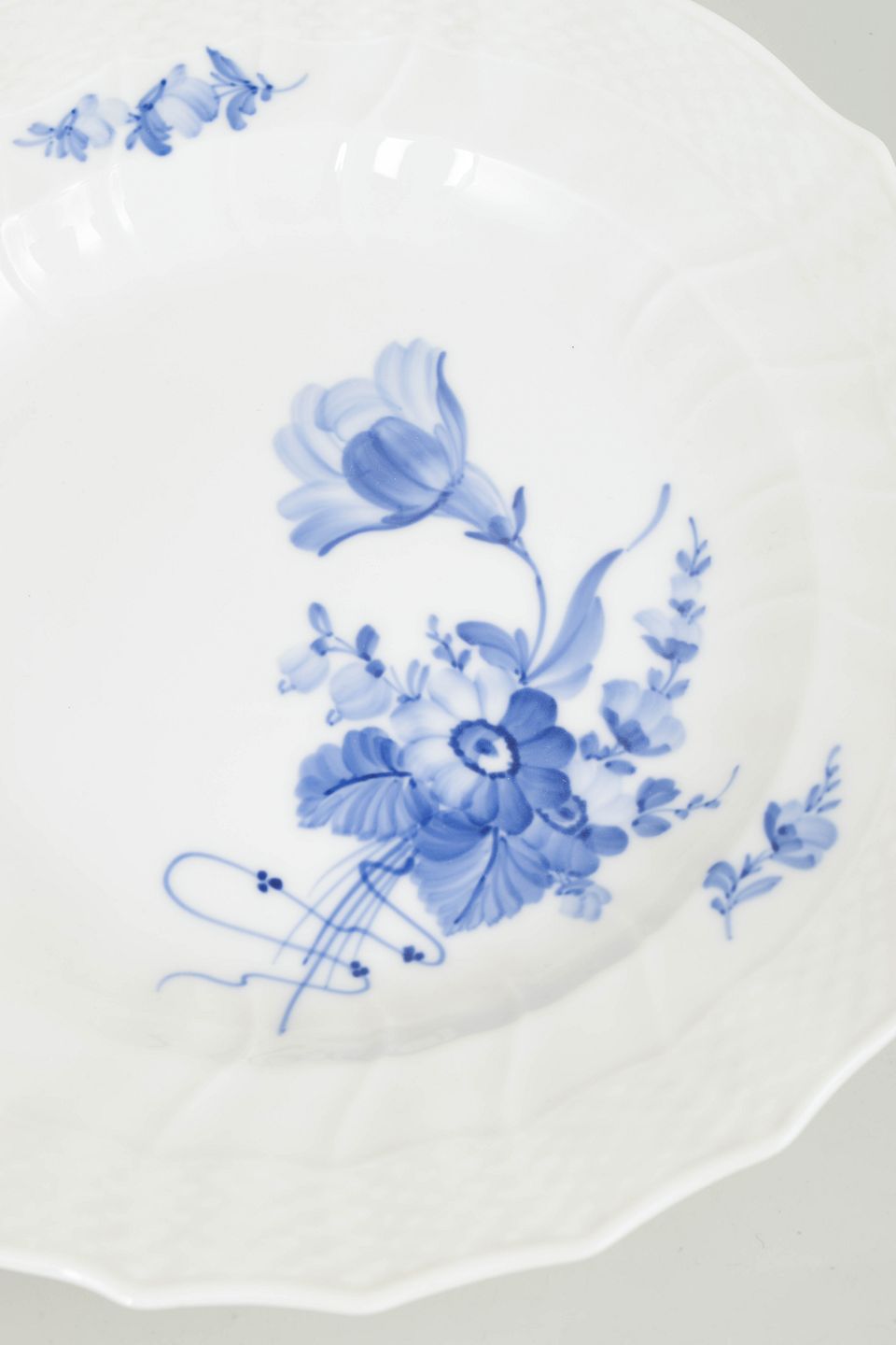 Royal Copenhagen was founded in 1775 in Copenhagen under royal patronage. The factory is internationally recognised for its hand-painted porcelain and high artistic standards. Blue Flower Curved was introduced in the eighteenth century and continued into the twentieth century, characterised by its naturalistic floral decoration and elegant curved form.