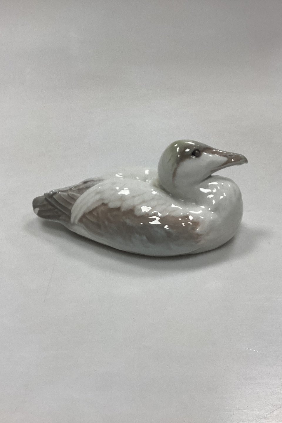 Bing and Grøndahl Figurine of Eider Duck/Drake No. 1507. Signed ?. Jacobsen. The colors are pale in green and beige, unlike a real eider. Has a chip on the tail feather, see photo.