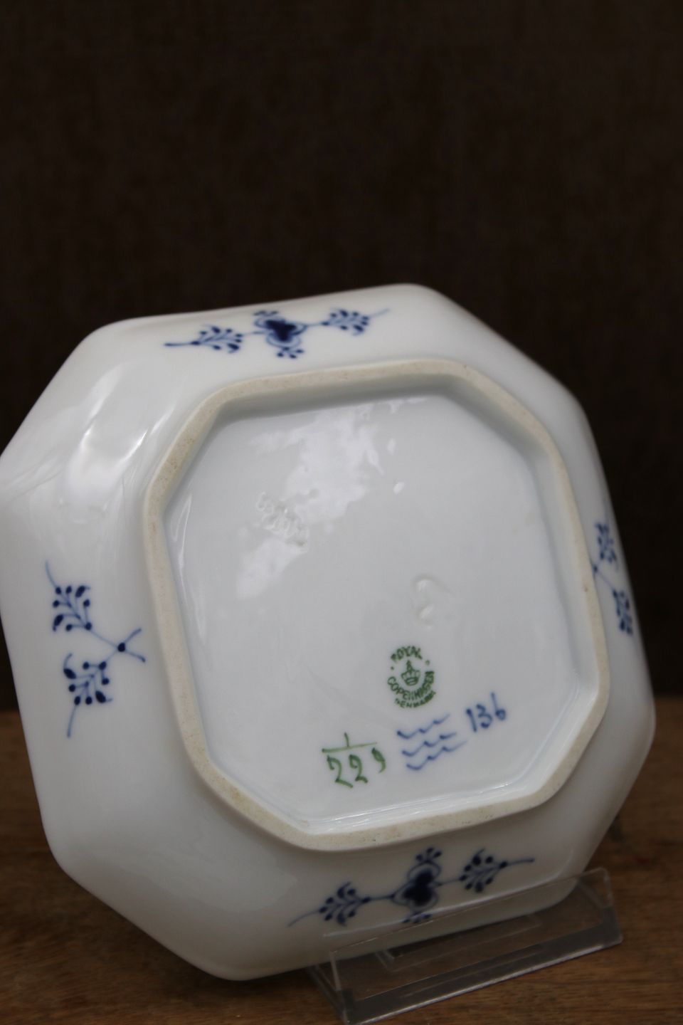 8-cornered saucer in Blue Fluted Plain from Royal Copenhagen.