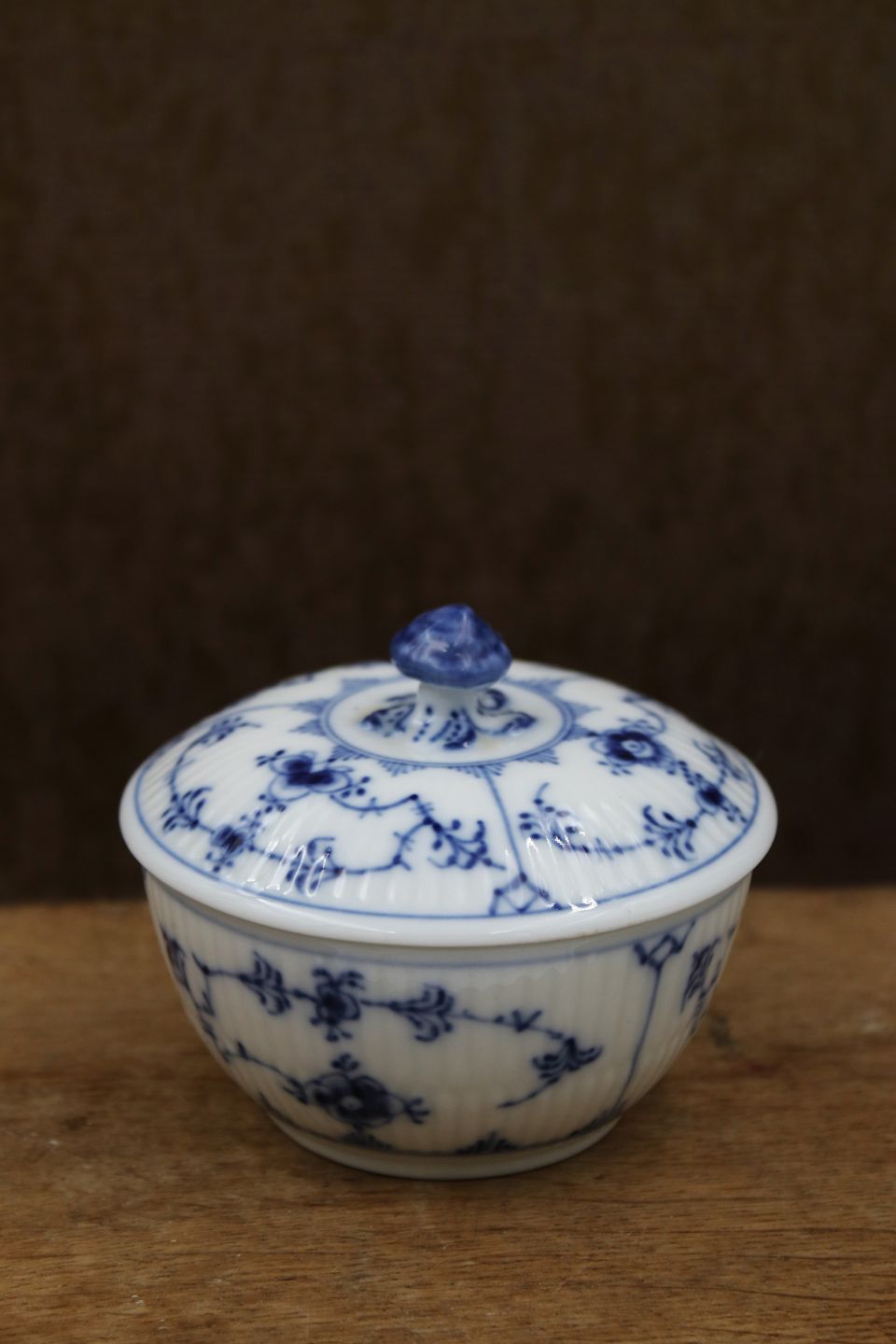 Royal Copenhagen Blue Fluted Plain sugar bowl with lid.