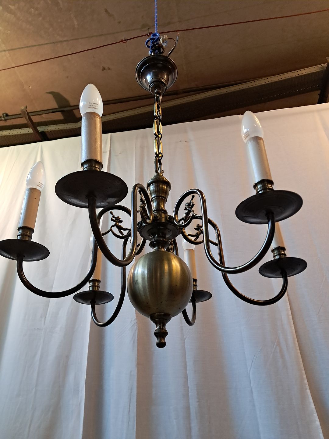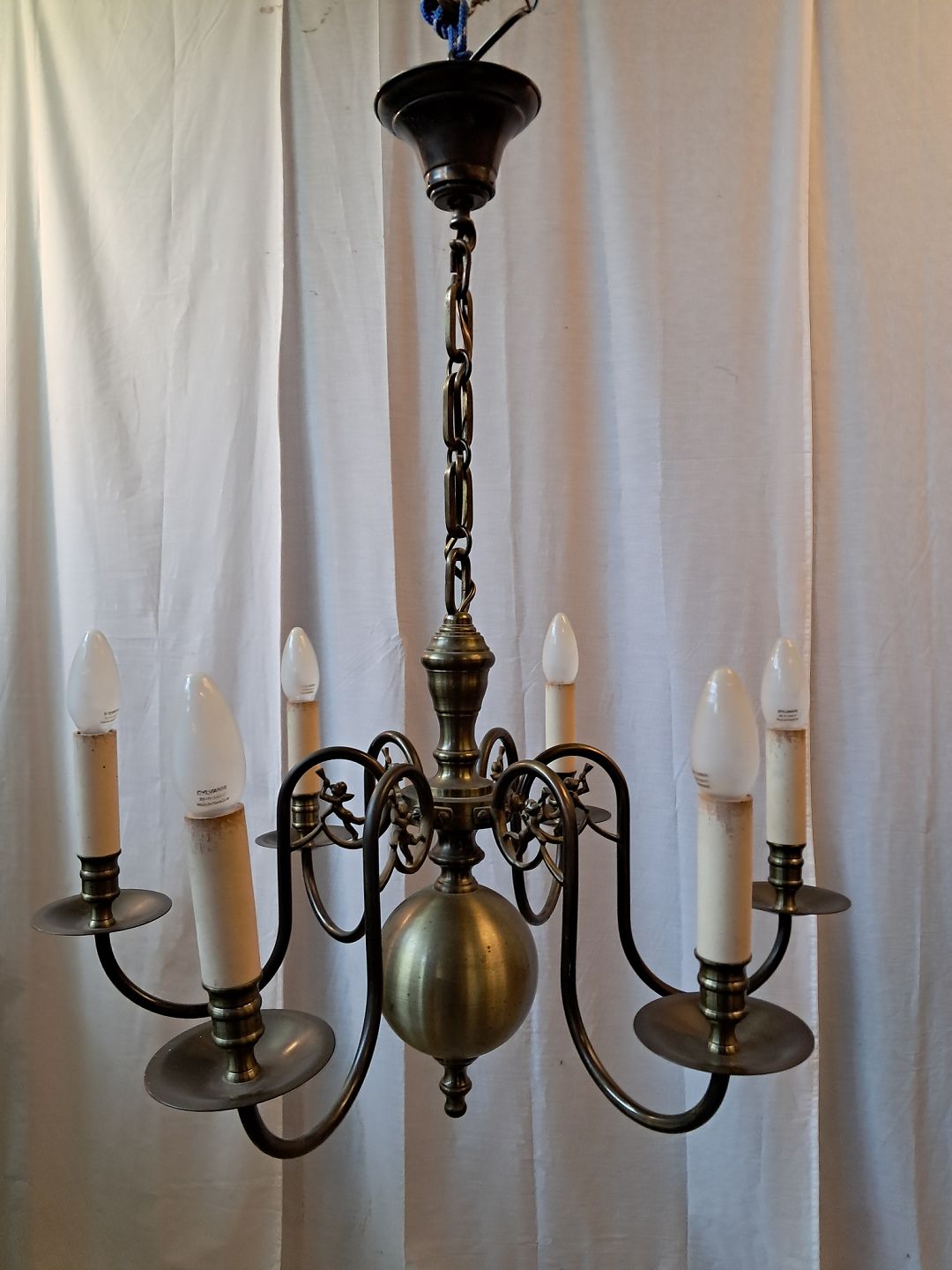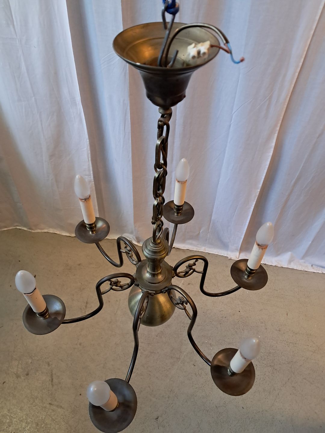 6-armet kirkekrone i bruneret messing, fra 1930erne.