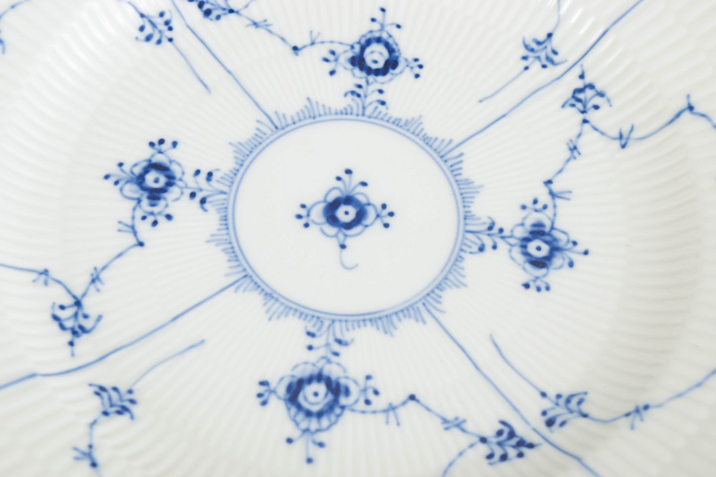 Royal Copenhagen was founded in 1775 in Copenhagen under royal patronage. The factory is internationally renowned for its hand-painted porcelain and high artistic standards. Blue Fluted Half Lace is a development of the classic Blue Fluted service, combining fluted surfaces with a decorative lace border and finely detailed hand-painted decoration.