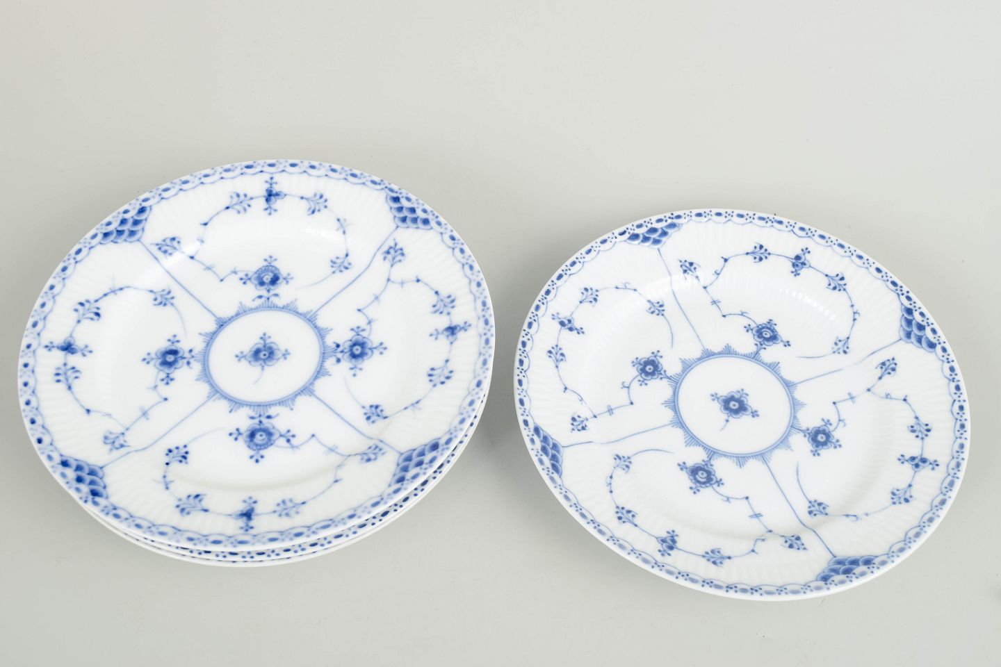 Royal Copenhagen Blue Fluted Half Lace set of four salad plates.