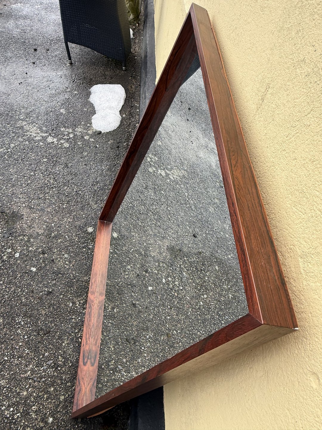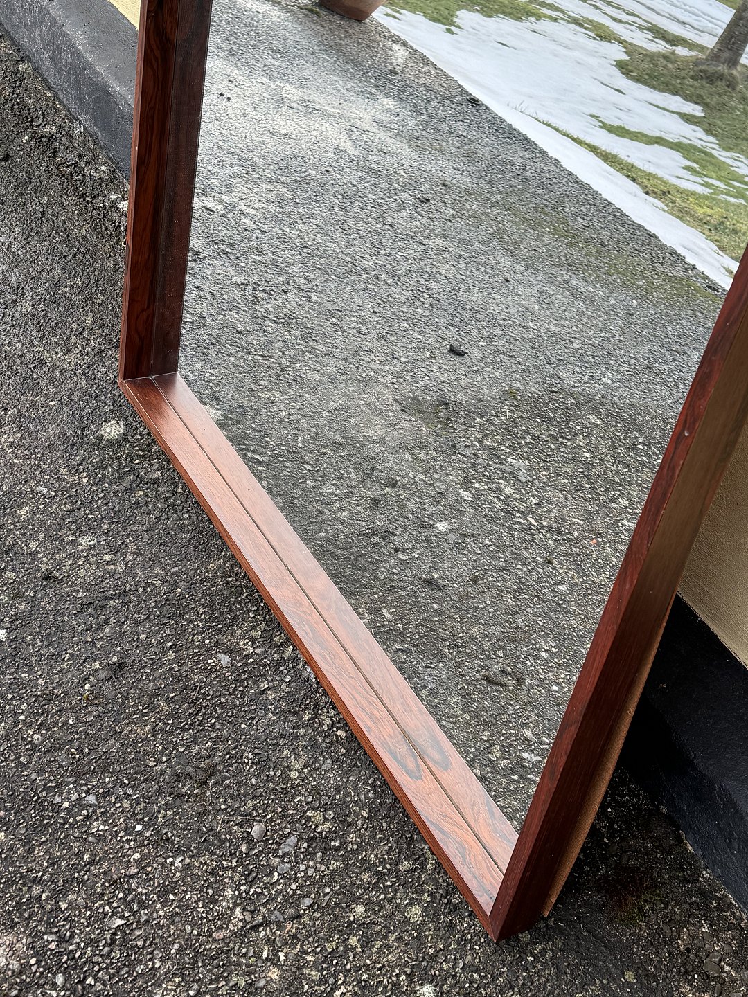Large rosewood mirror with a strong frame. Has been in the hallway set together with the sideboard item no. 632824, Discontinued and marked from Illums Bolighus, Dimensions: 100x123cm *Excellent condition*