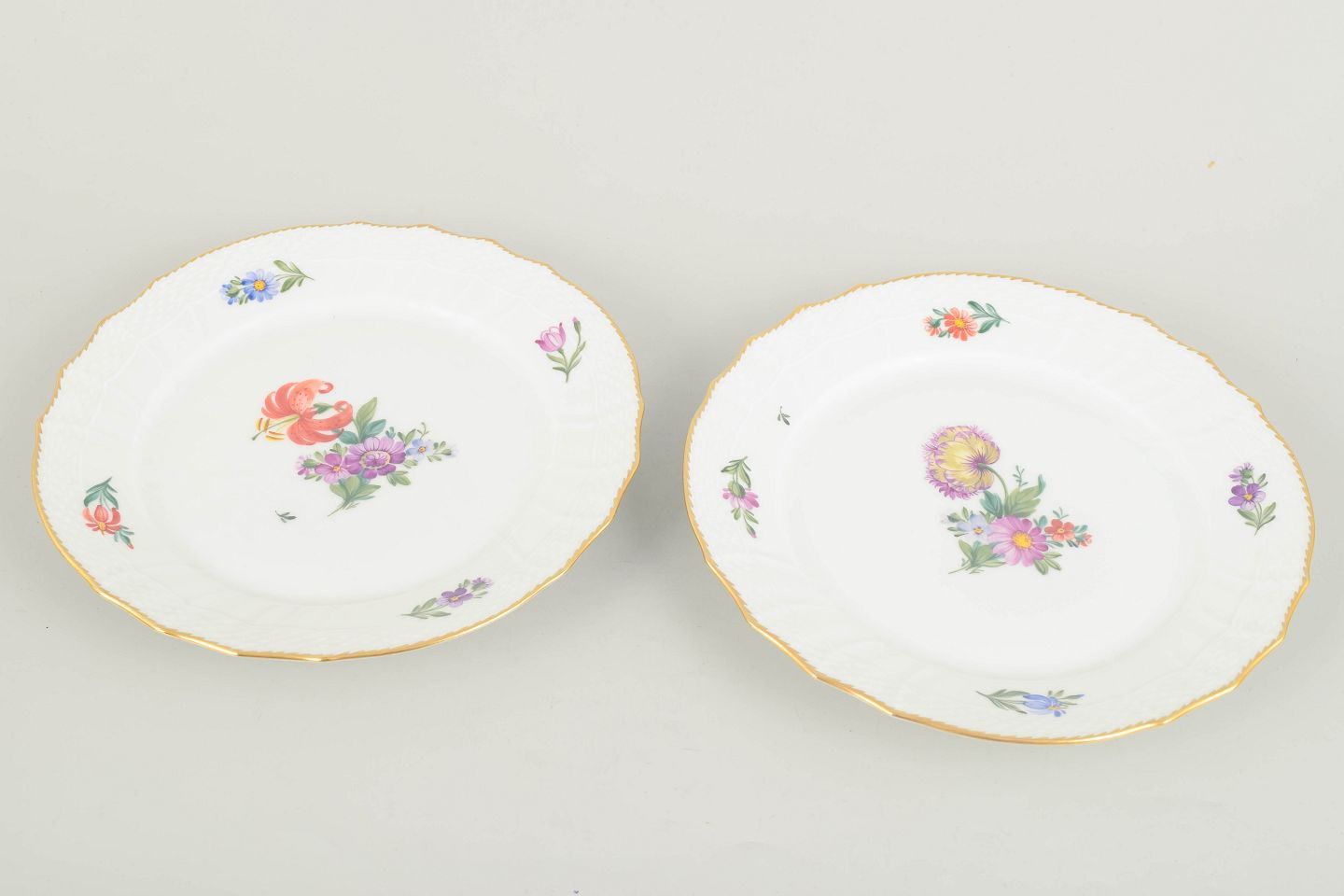 Text zugänglich auf Dänische: Royal Copenhagen, saksisk blomst sæt af to frokosttallerkener.
