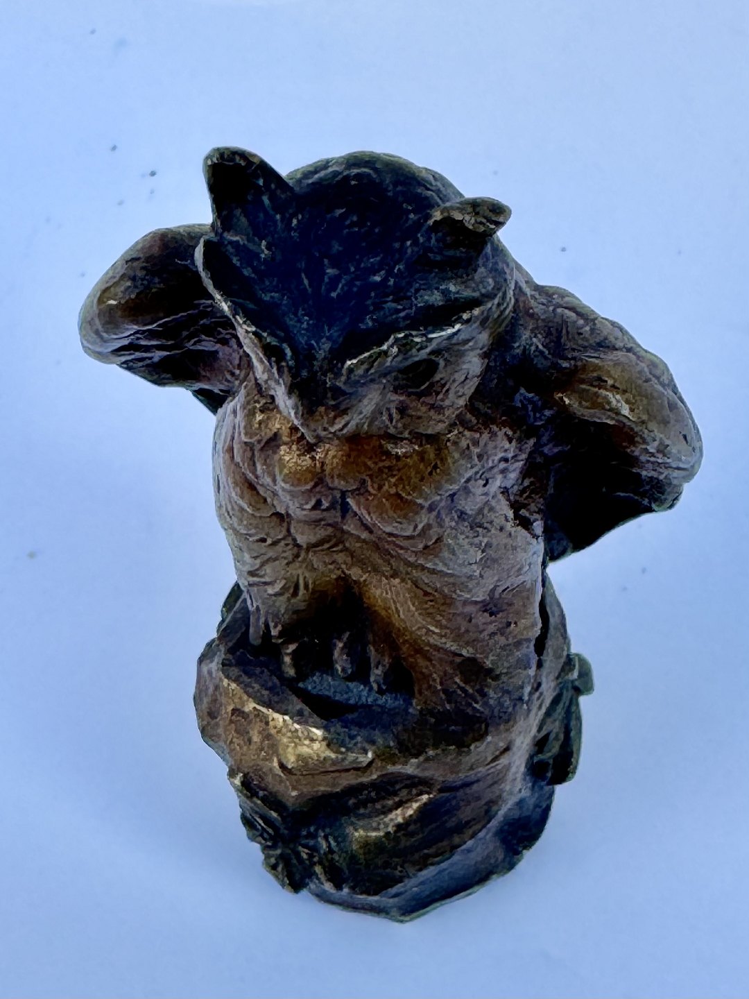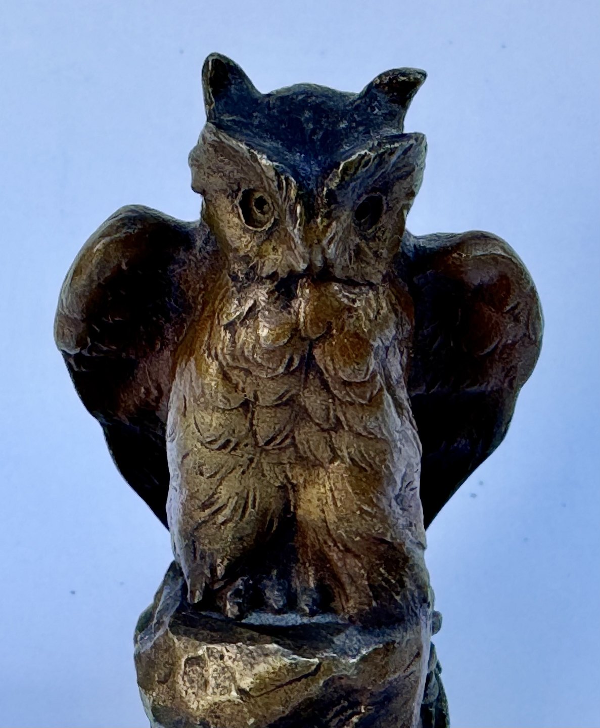 Smalll and very elegant solid bronze owl figurine. Many fine details. In perfect condition. Not marked. H. 6.2 cm