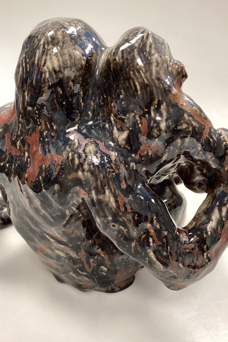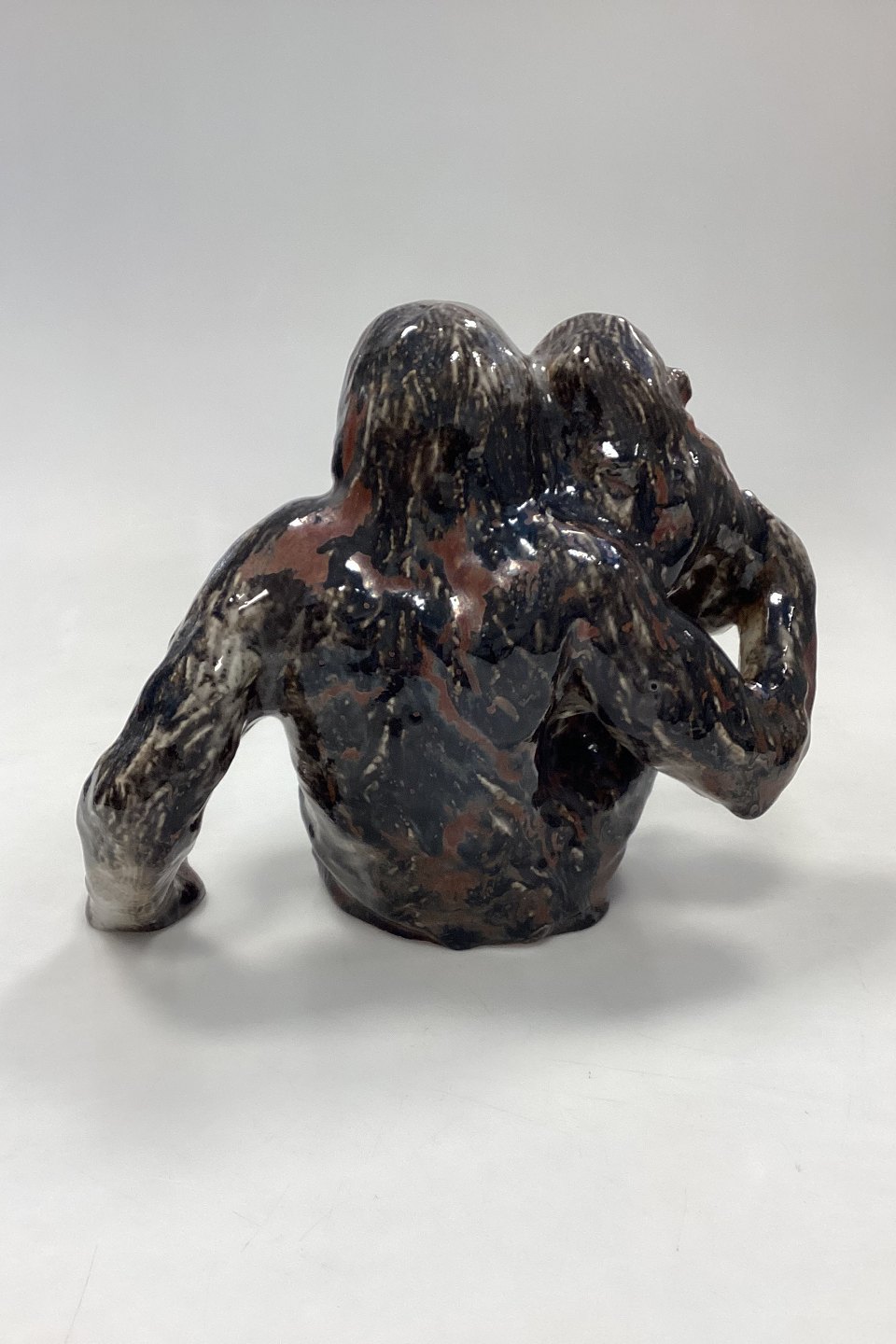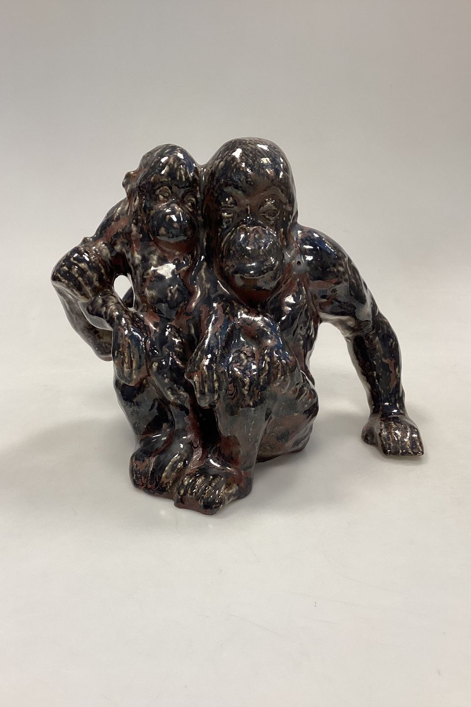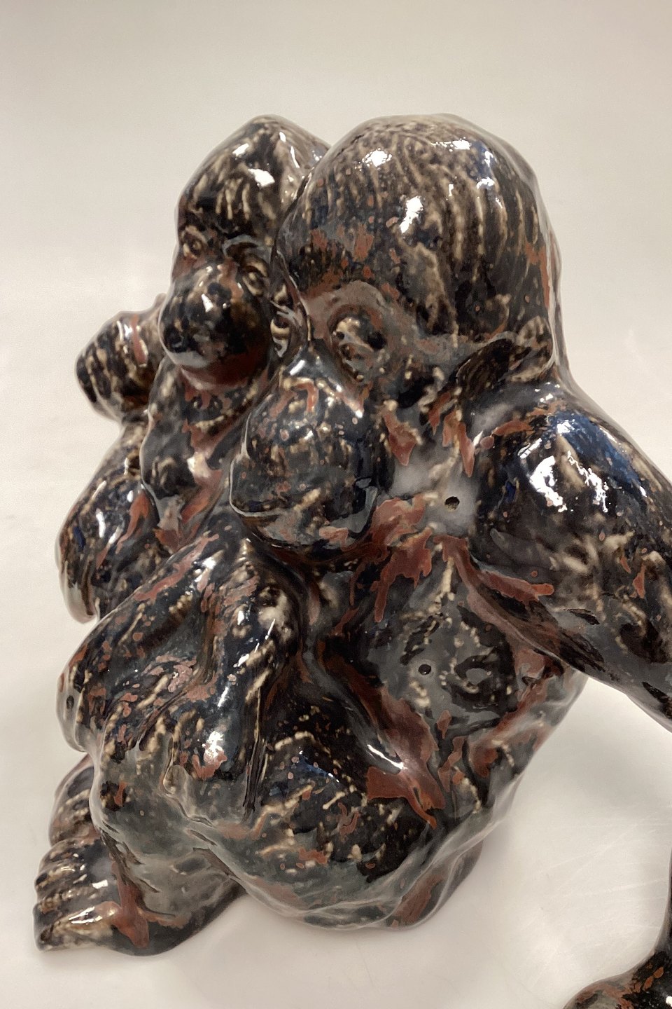 Bing and Grøndahl Stoneware Figurine - Orangutan/Monkey with Young by Knud Kyhn. Glaze in brown, blood red and white. There are 2 glaze holes on the left side of the mother monkey. The base is marked with the number 88.