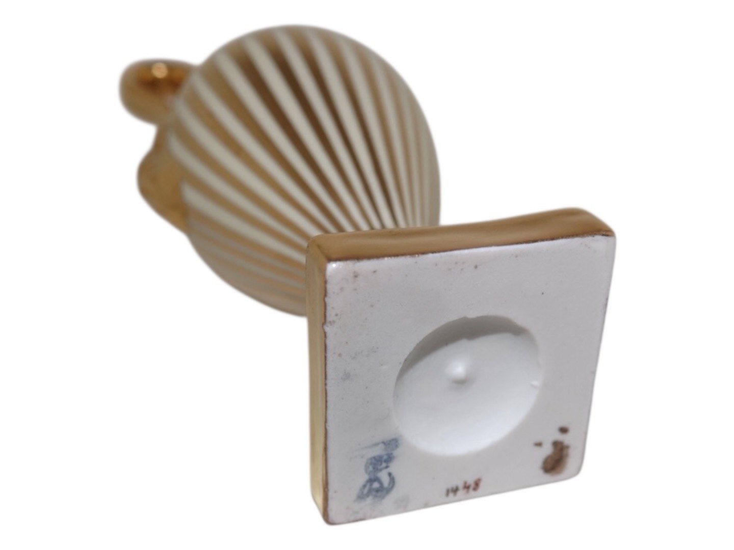 Most likely Dresden porcelain, small vase with gold decoration.