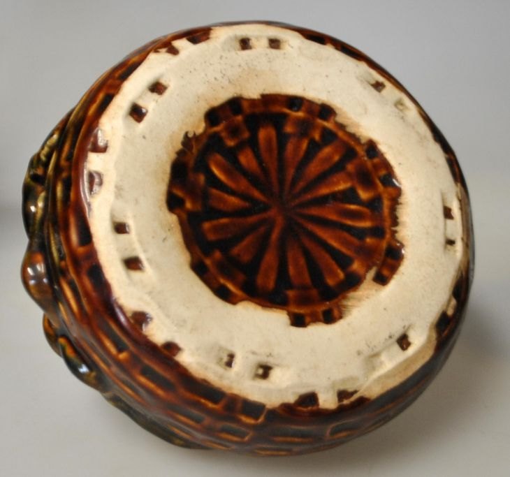 Faience bowl, approx. 1900. Brown glazed. Decorated with an octopus by a basket. H.: 7.5 cm. Dia.: 12.5 cm.