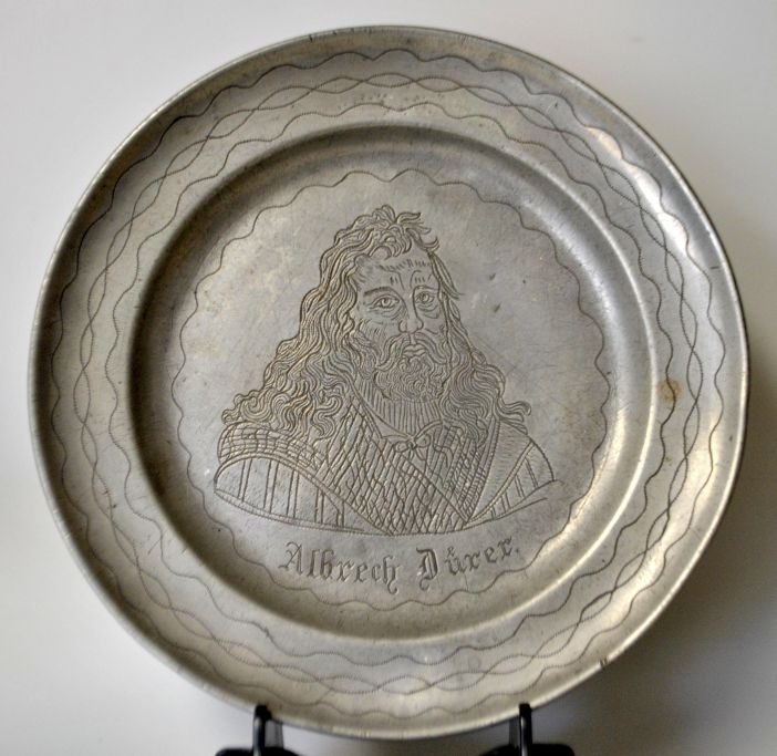 Pewter plate with Albrecht Dürer, 19th century Germany.