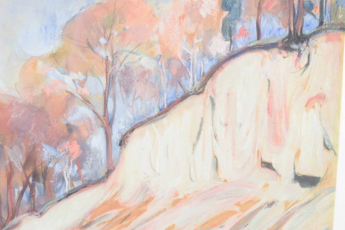 Landscape composition depicting dunes and trees executed in oil on paper, signed and dated 1918.