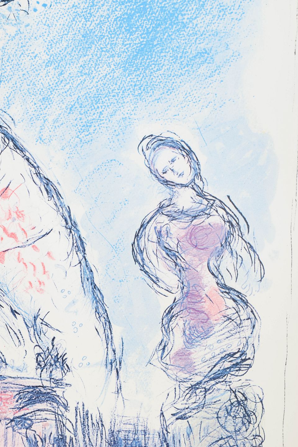 Marc Chagall (1887–1985) was a Russian-French artist and one of the most influential figures of twentieth-century modernism. He worked across painting, printmaking, stage design and stained glass, and is known for poetic compositions featuring floating figures, lovers, animals and cityscapes. Chagall developed a highly personal visual language combining elements of cubism, fauvism and symbolism. His lithographs and graphic works, often produced in collaboration with Parisian ateliers such as Mourlot, are among the most celebrated graphic works of the twentieth century.