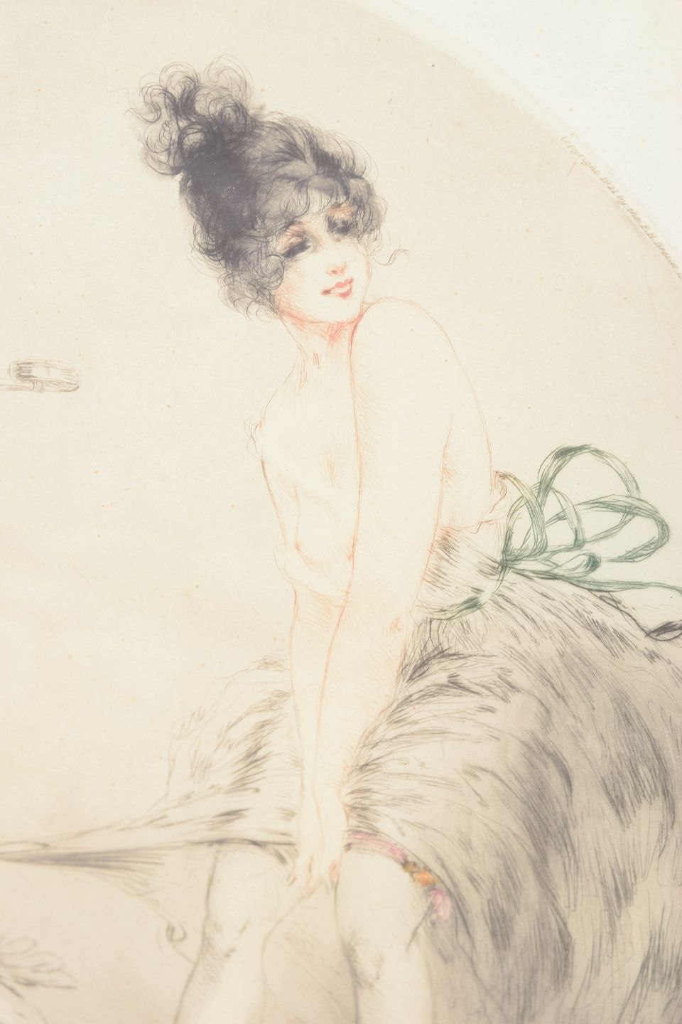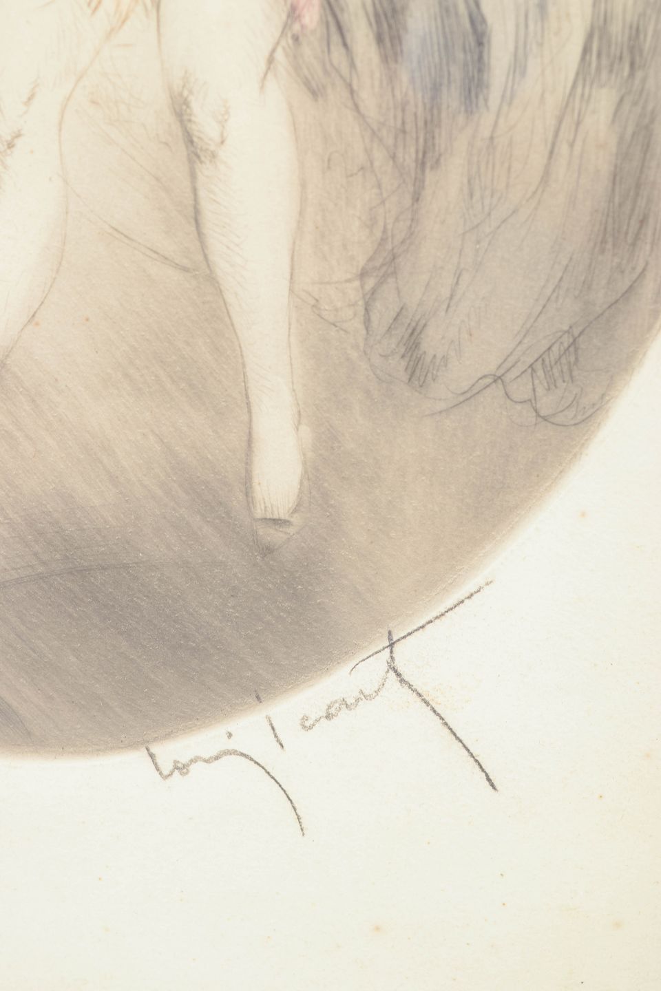 Louis Icart (1888–1950) was a French painter and printmaker born in Toulouse. He moved to Paris in 1907 where he studied drawing, painting and printmaking. Icart became particularly renowned during the 1920s and 1930s for his elegant colour etchings depicting fashionable and playful female figures. His work blends the refined line and grace of eighteenth-century masters such as Watteau, Boucher and Fragonard with the decorative sophistication associated with the Art Deco era. His prints achieved great popularity both in Europe and especially in the United States, and they remain among the most recognisable graphic works of interwar Paris.