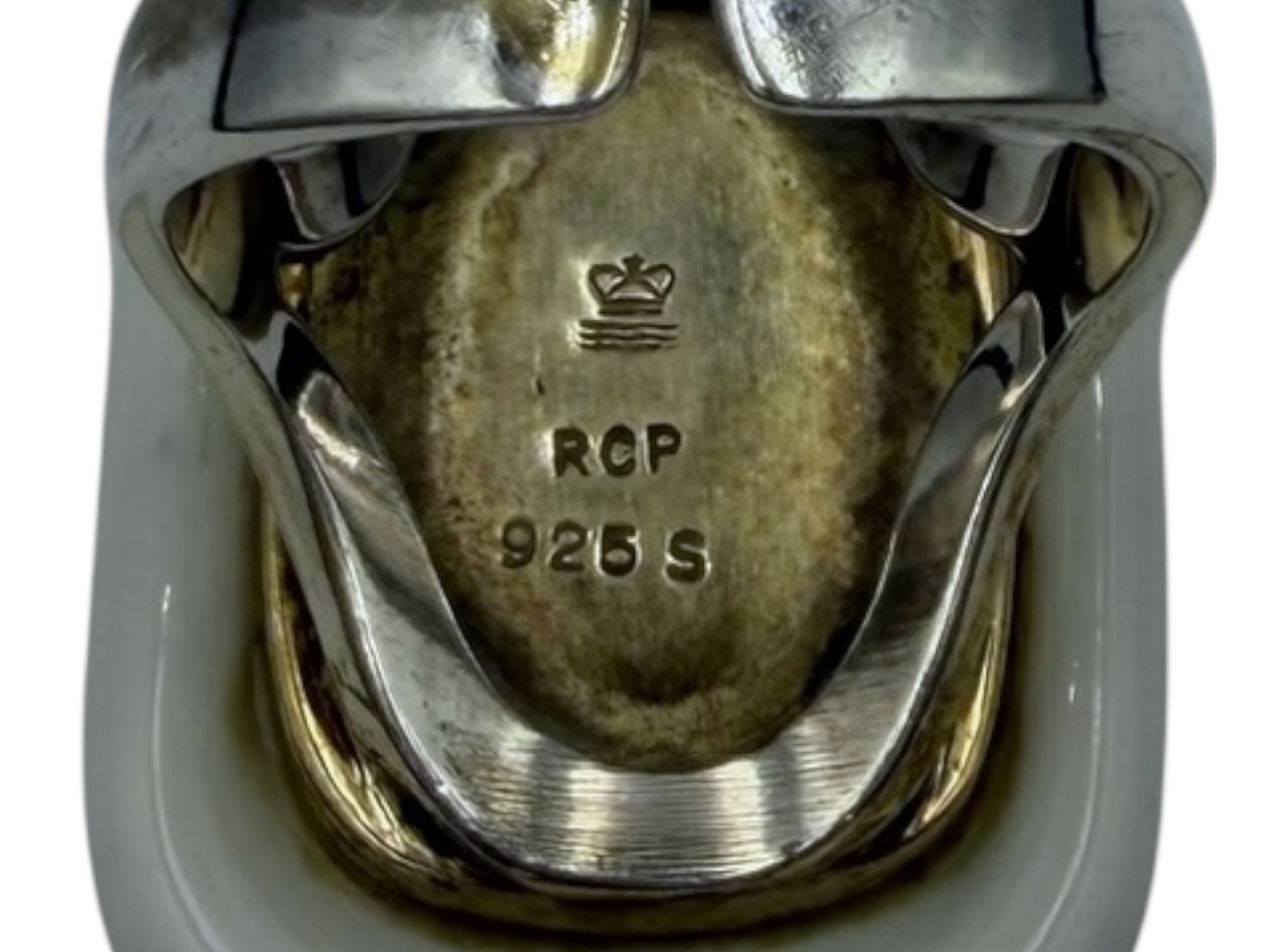 Royal Copenhagen sterling silver ring with modern porcelain on top.
