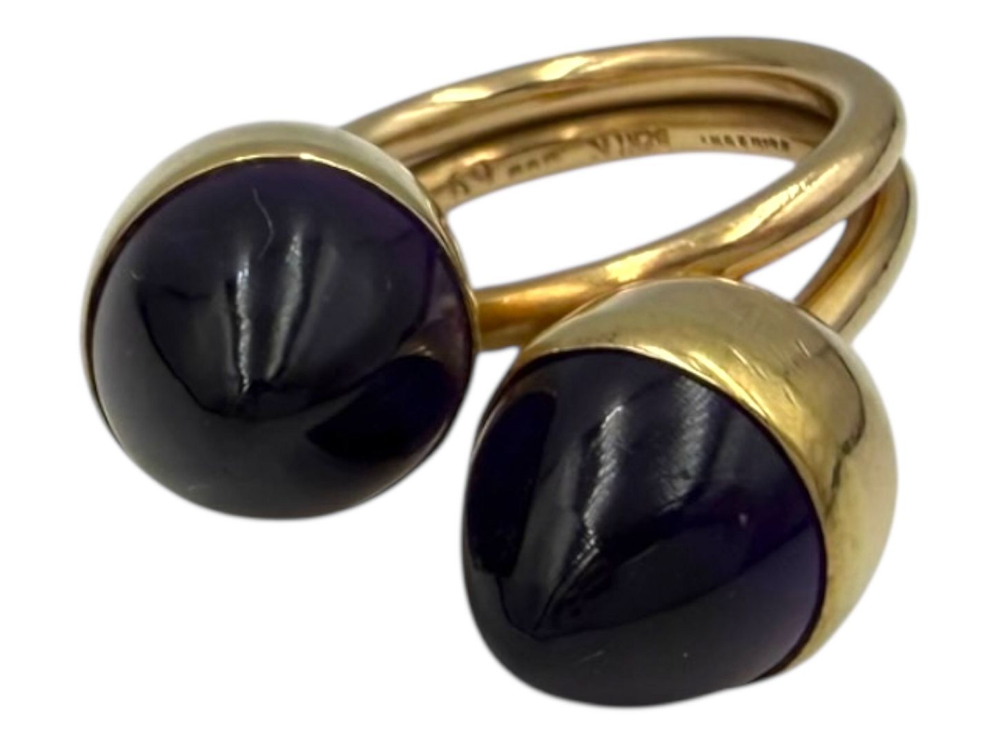 Bent Knudsen, large 14 carat gold ring with two purple round amethyst stones. The ring is made in a thick quality.