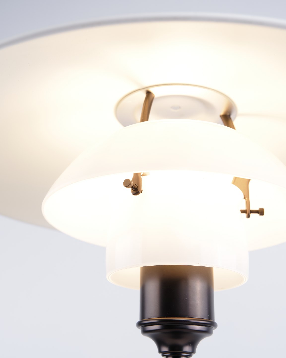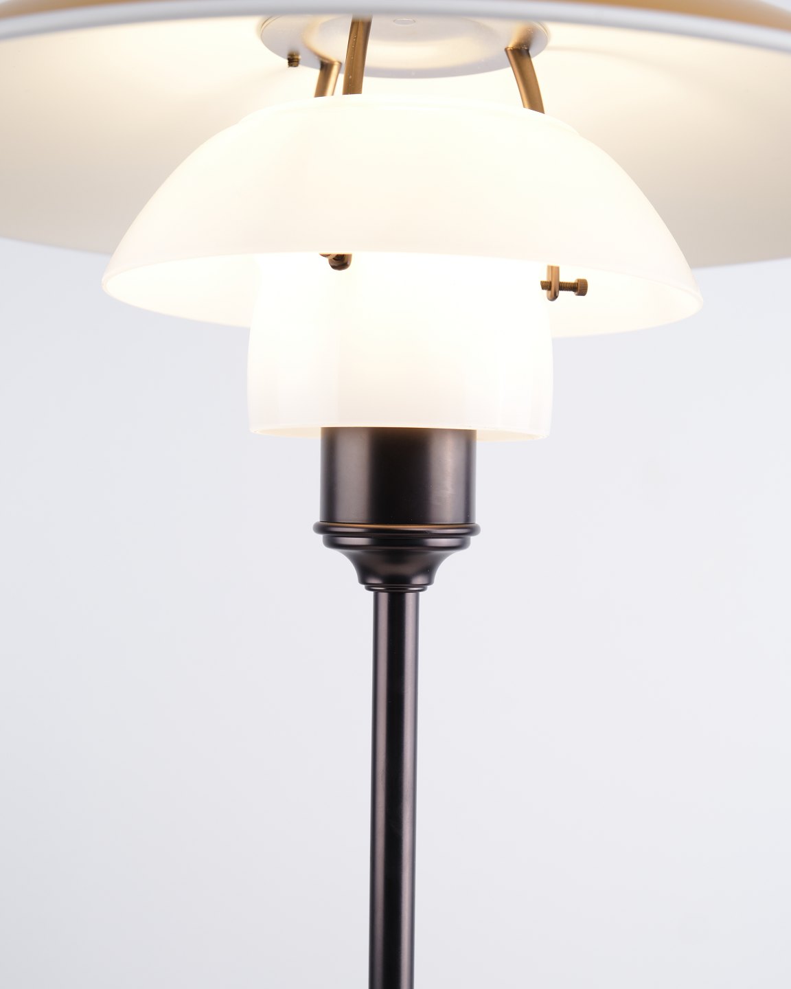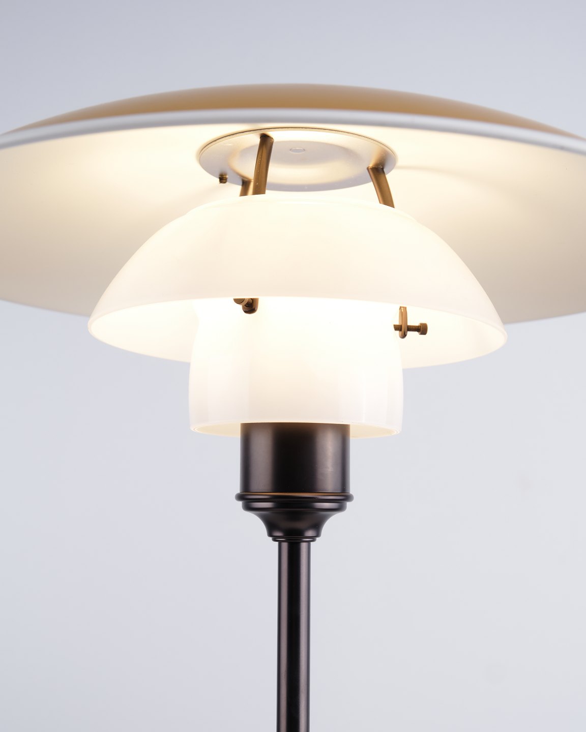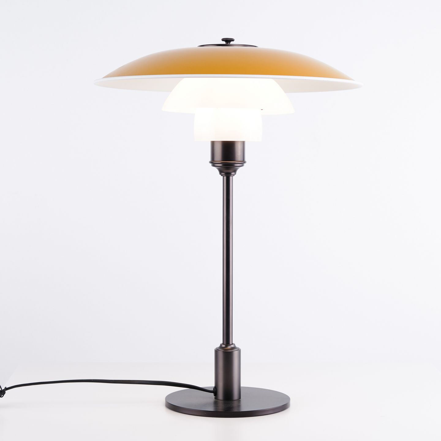 PH 3½-2½ table lamp from Louis Poulsen designed by Poul Henningsen in yellow metal and burnished brass. Classic Danish lighting design.