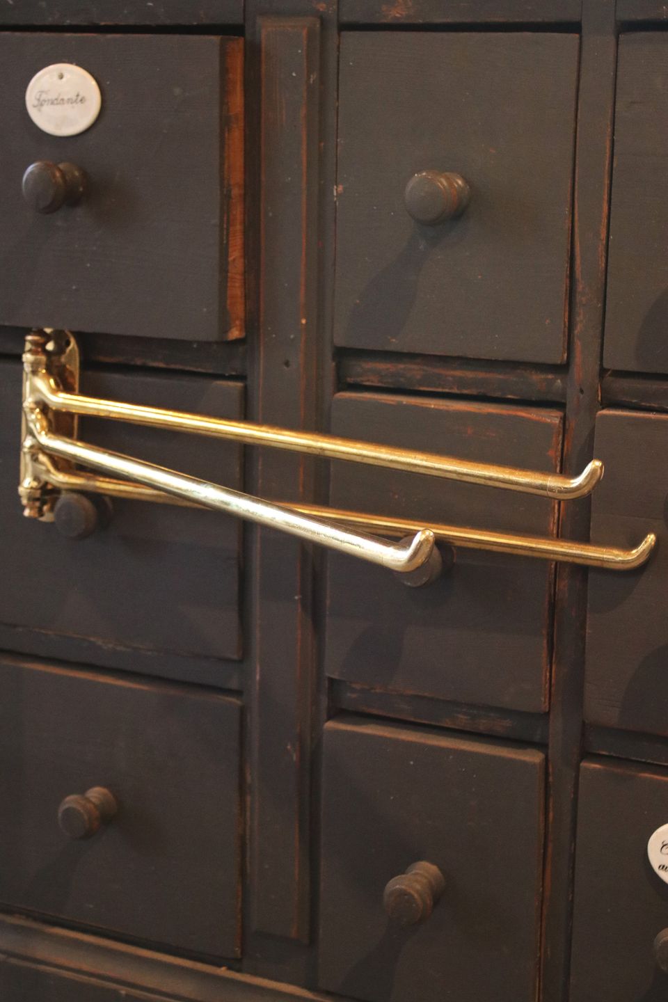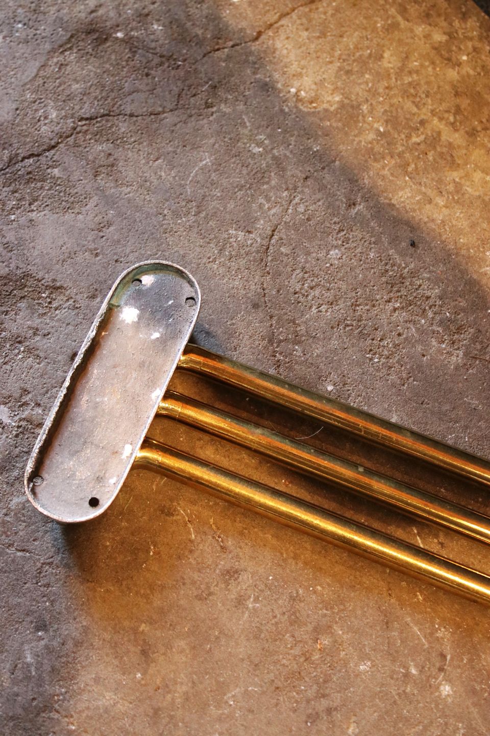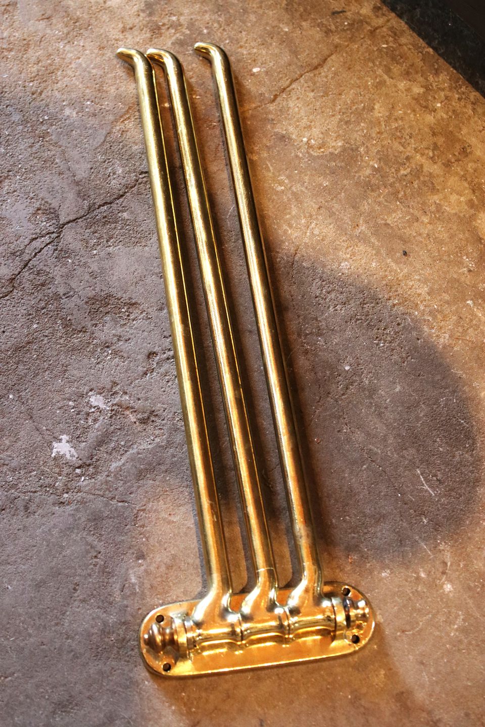 Old French wall-mounted towel holder in solid brass with a fine patina...